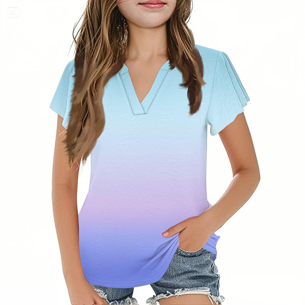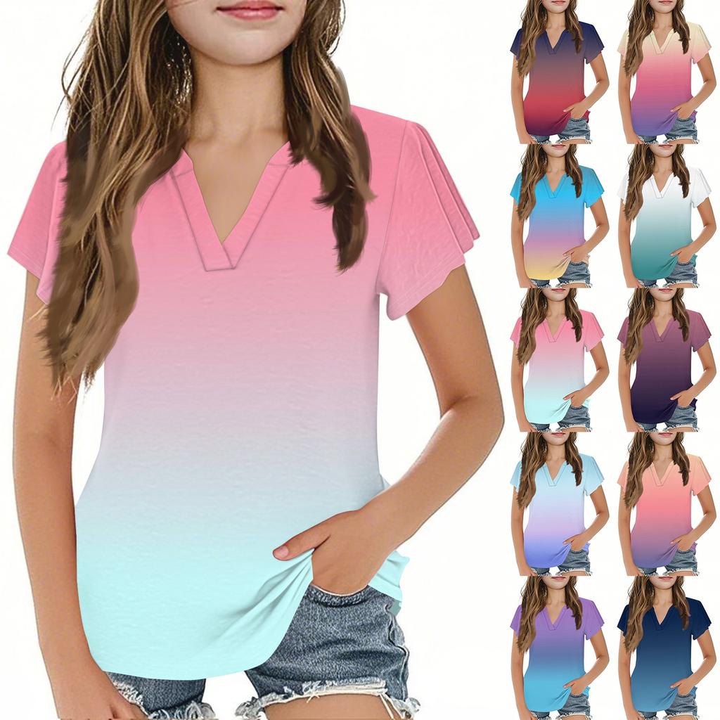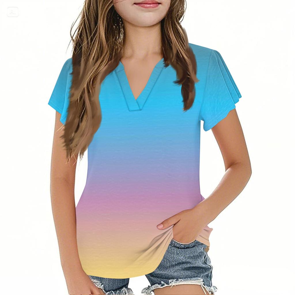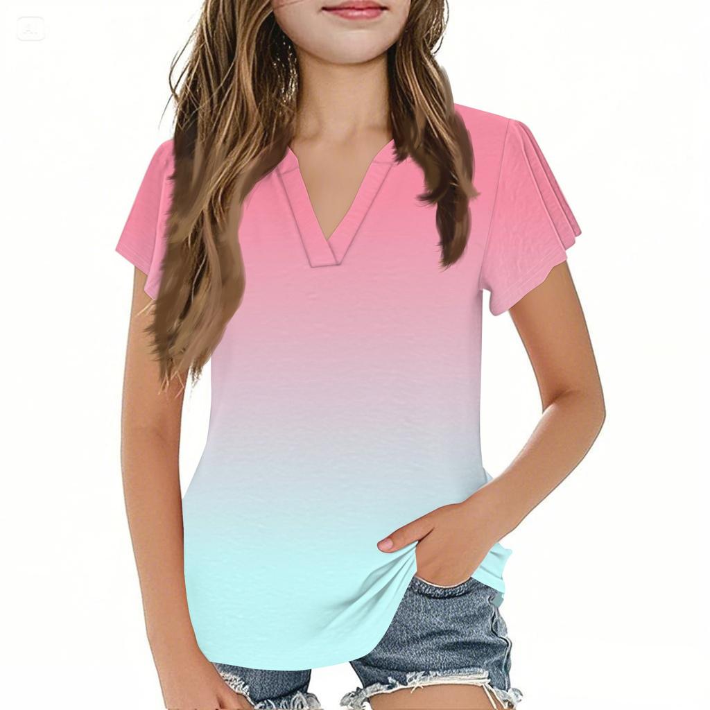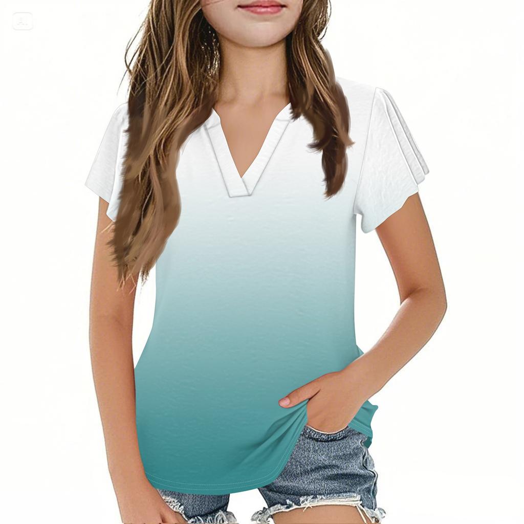 Летний детский милый и повседневный модный топ для девочек с короткими рукавами и V-образным вырезом