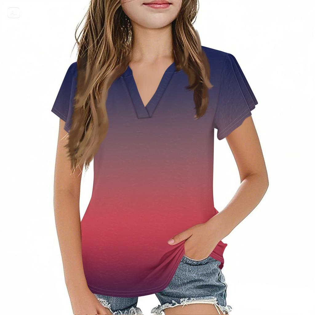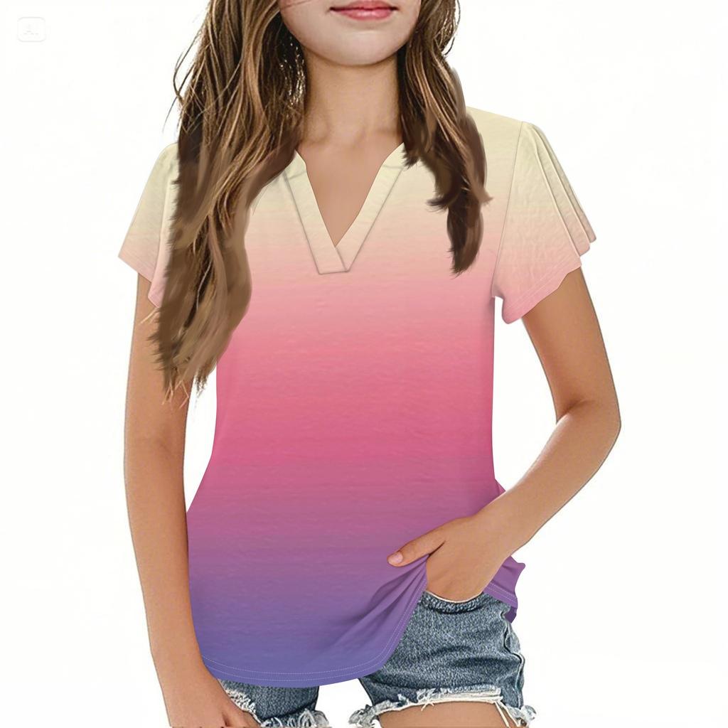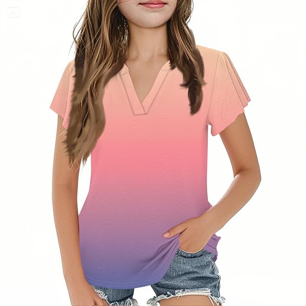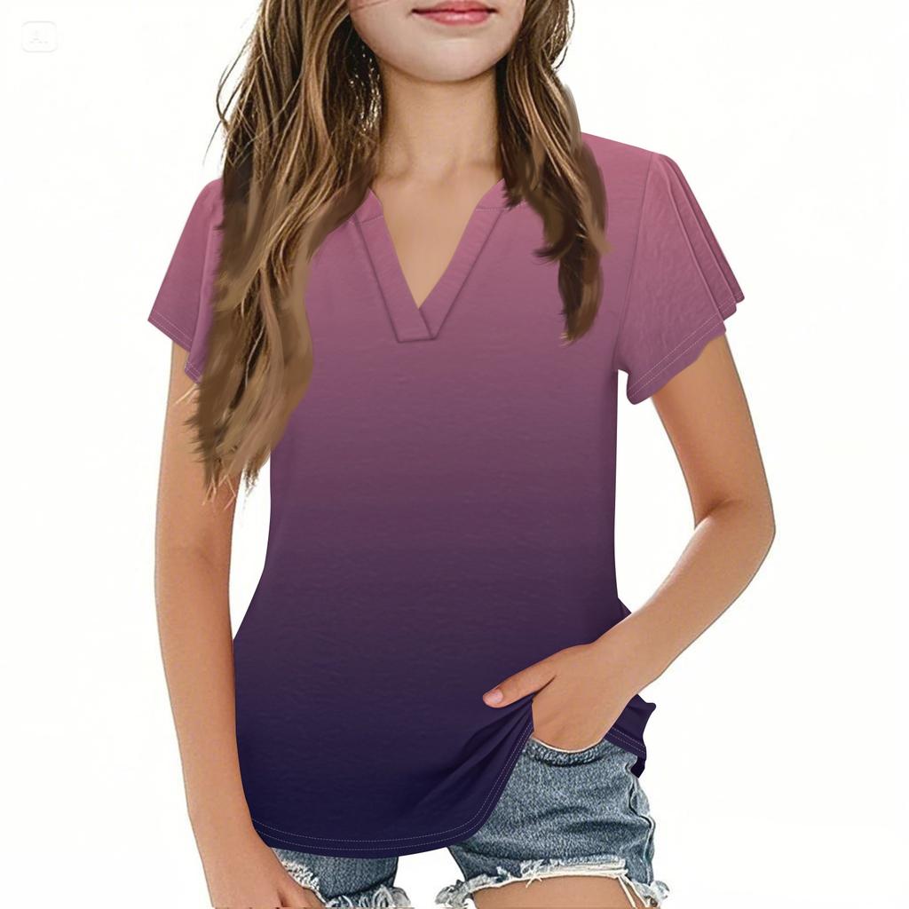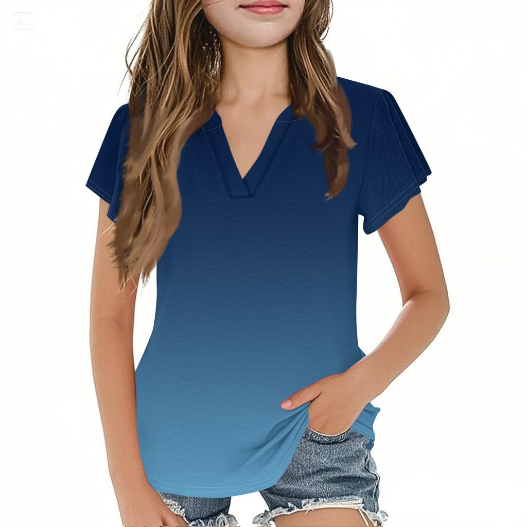 Летний детский милый и повседневный модный топ для девочек с короткими рукавами и V-образным вырезом