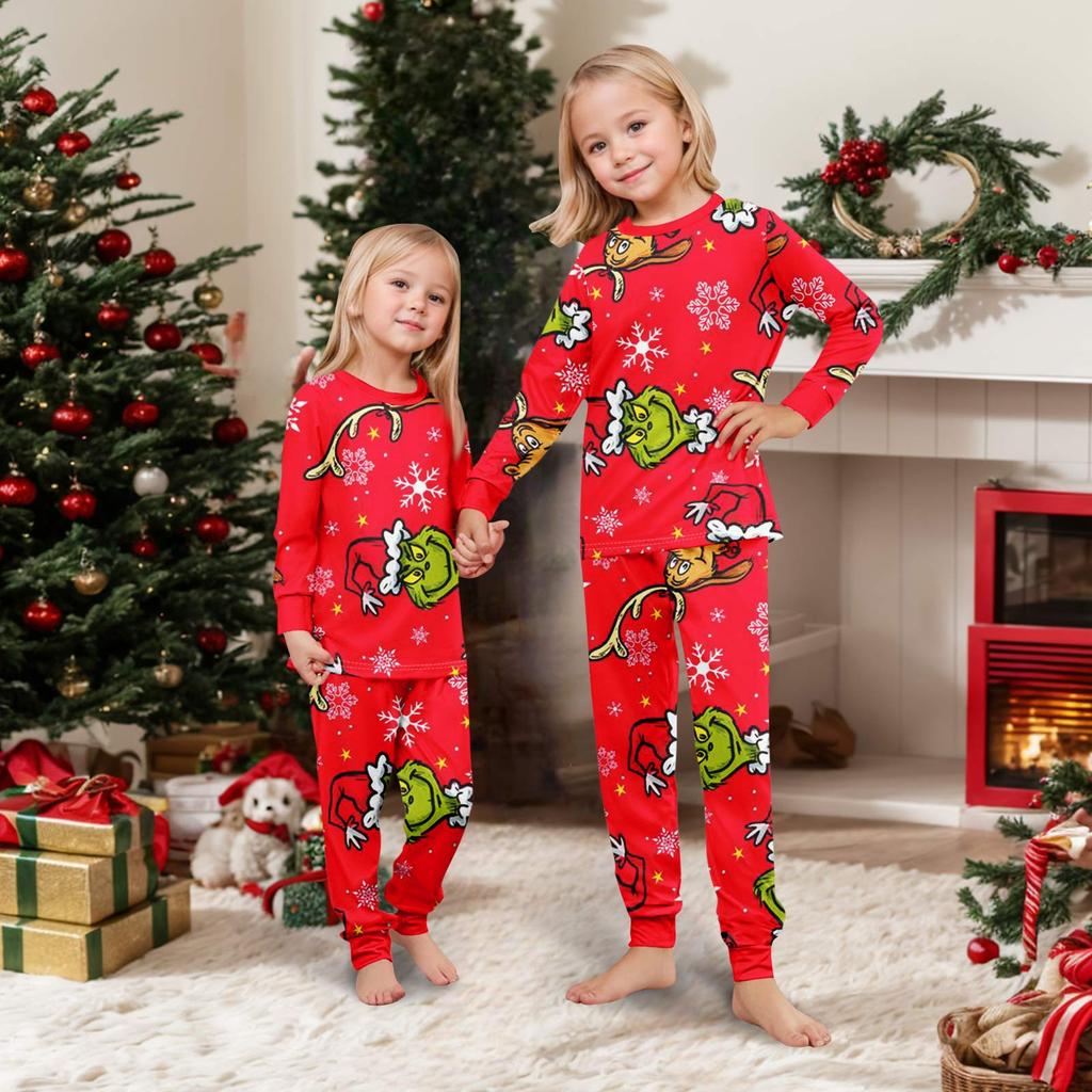 Рождественский принт милый семейный комплект пижамы, домашняя одежда, семейный комплект топ с длинным рукавом и штаны комплект