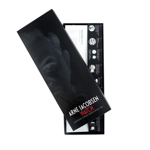 ARNE JACOBSEN STATION 53412-2001B Watch, 40mm, Scandinavian Design, Water Resistant (Quiet Design with No Second Hand), White with Black Leather Strap