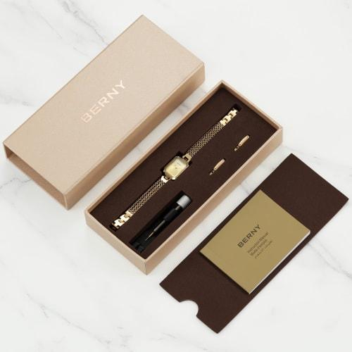 Женские кварцевые часы BERNY, Прямоугольные мини-часы, Модные минималистичные часы, Водонепроницаемость 7 АТМ, Съемный браслет из нержавеющей стали