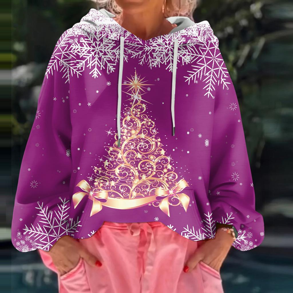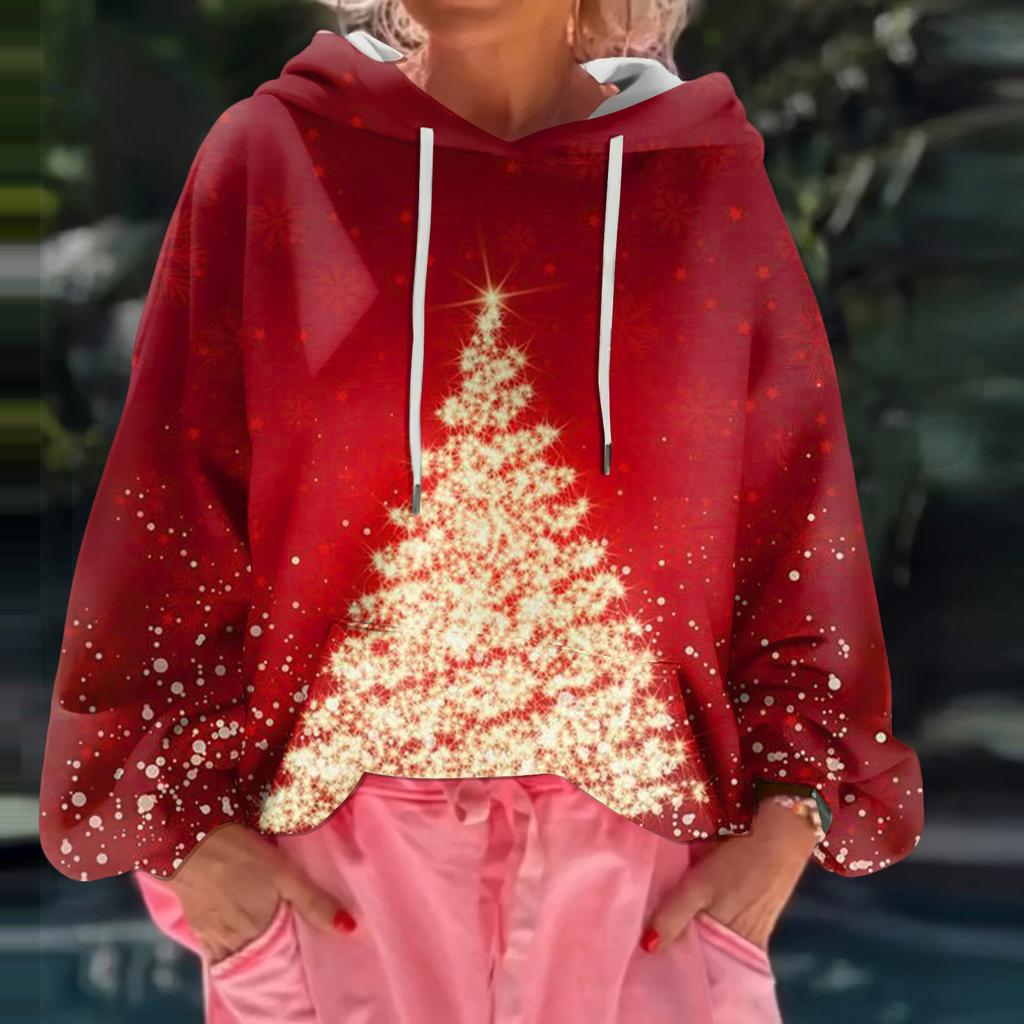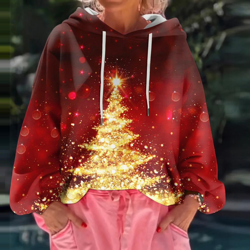Женский рождественский свитшот с капюшоном, свободного кроя, с длинными рукавами и принтом