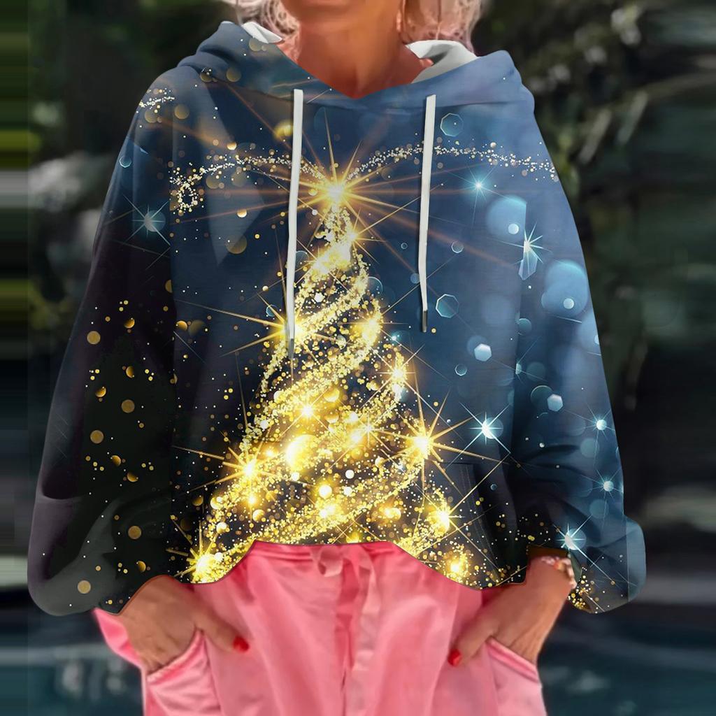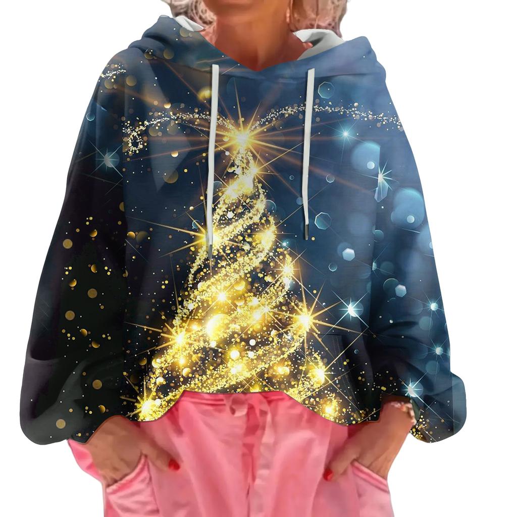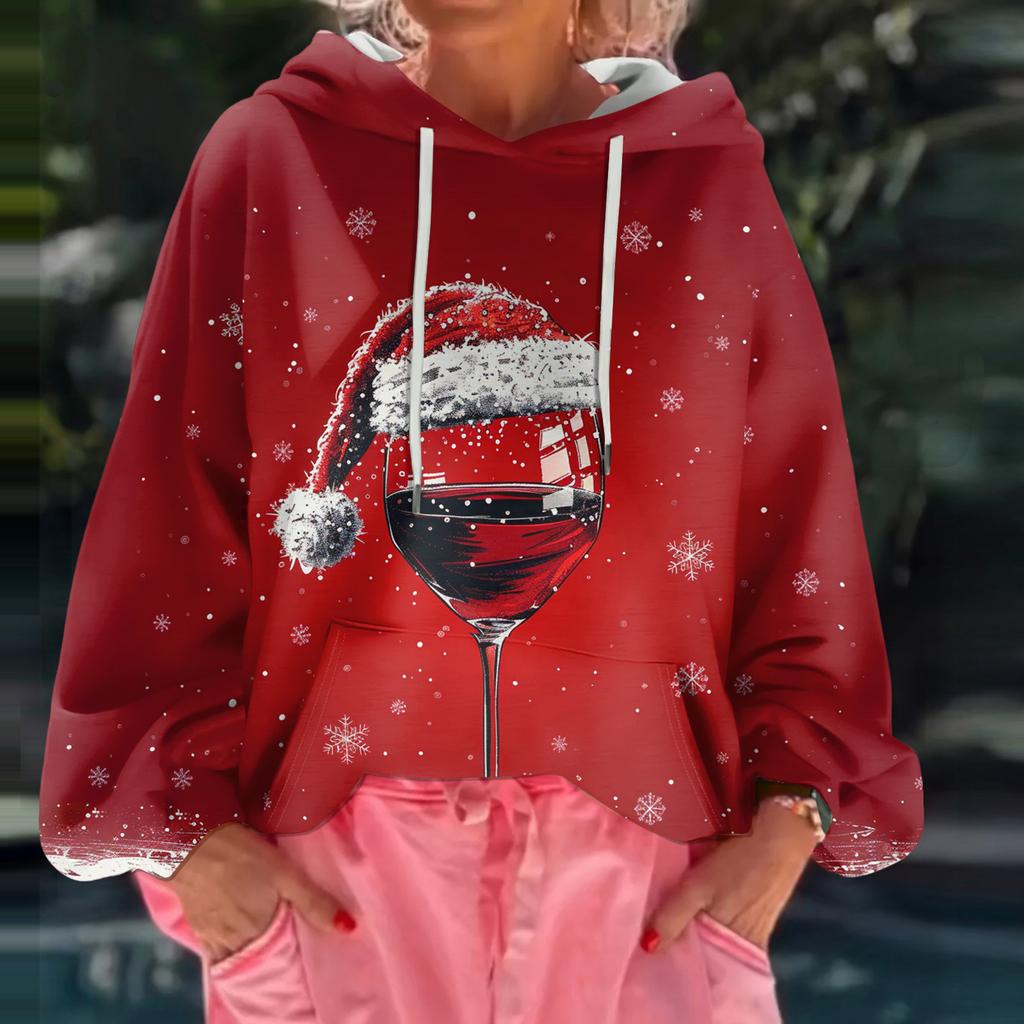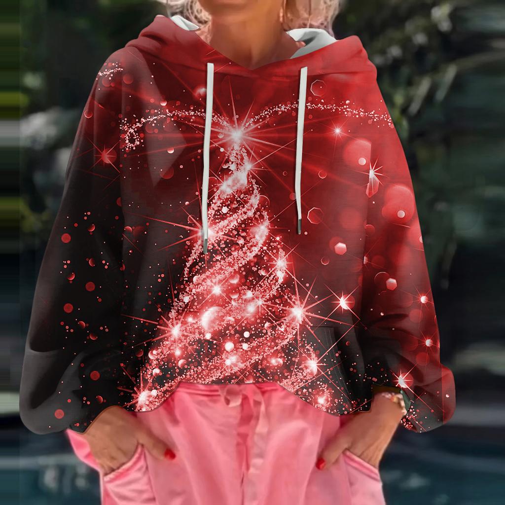 Женский рождественский свитшот с капюшоном, свободного кроя, с длинными рукавами и принтом