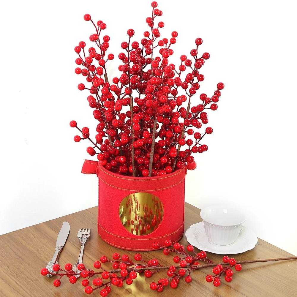 Искусственный букет красных ягод Рождественское украшение Искусственный цветок для домашнего декора Рождественская елка Навидад Новый год 2025 Украшения Аксессуар