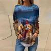 Женские футболки Повседневные футболки с круглым вырезом и длинным рукавом Рождественский принт Топ-пуловер
