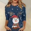 Рубашки с рукавом 3/4 для женщин с принтом, рождественские футболки, блузки, повседневные, плюс сайз, базовые топы, пуловер