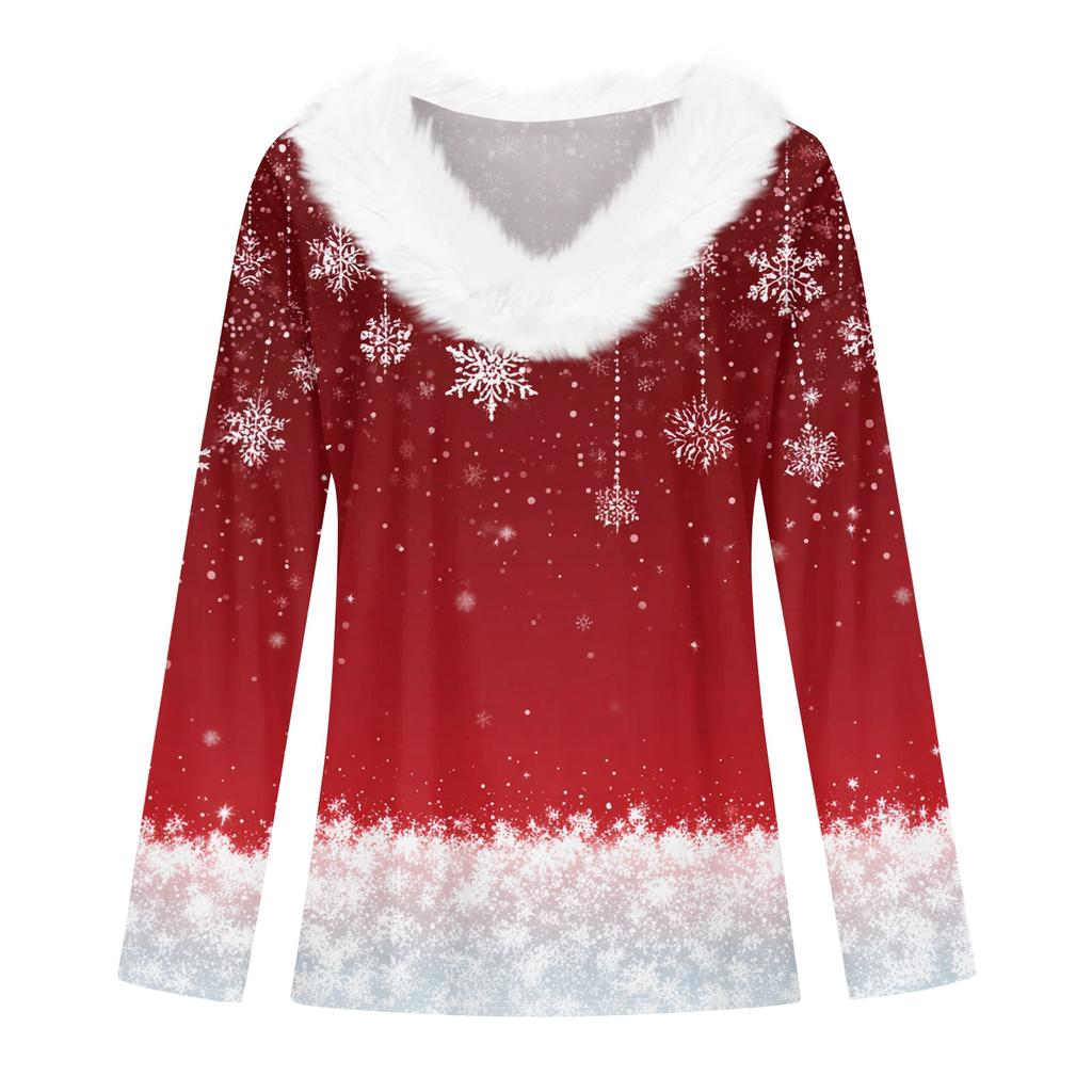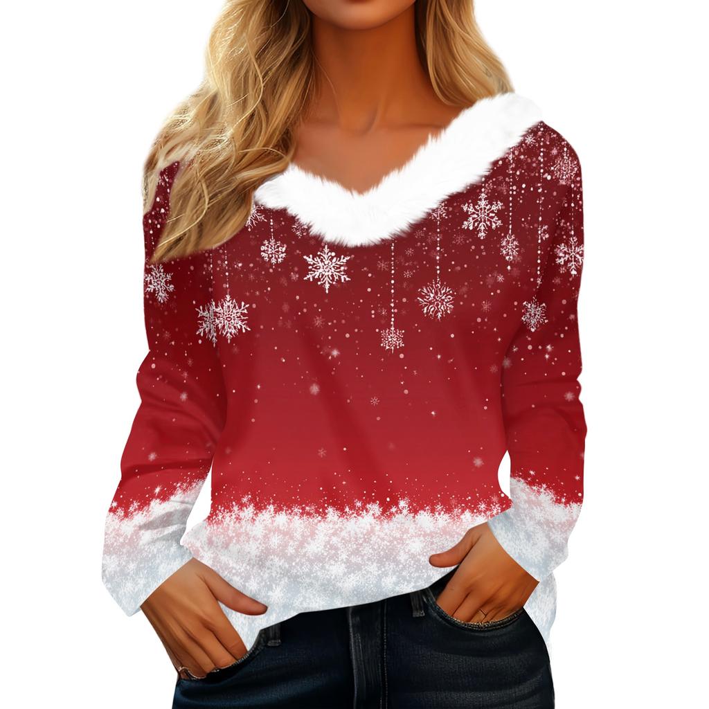 Рубашки с длинным рукавом для женщин Милые топы Рождественские принты Футболки Блузки Повседневные топы больших размеров Базовые топы Пуловеры