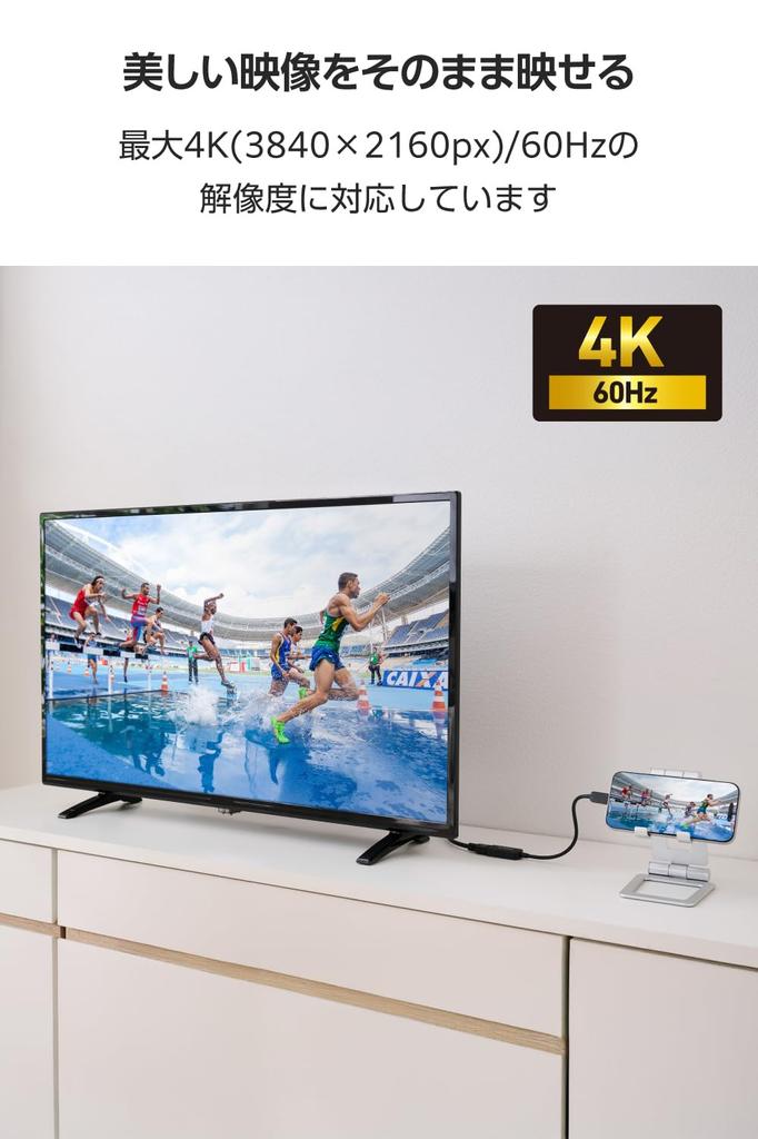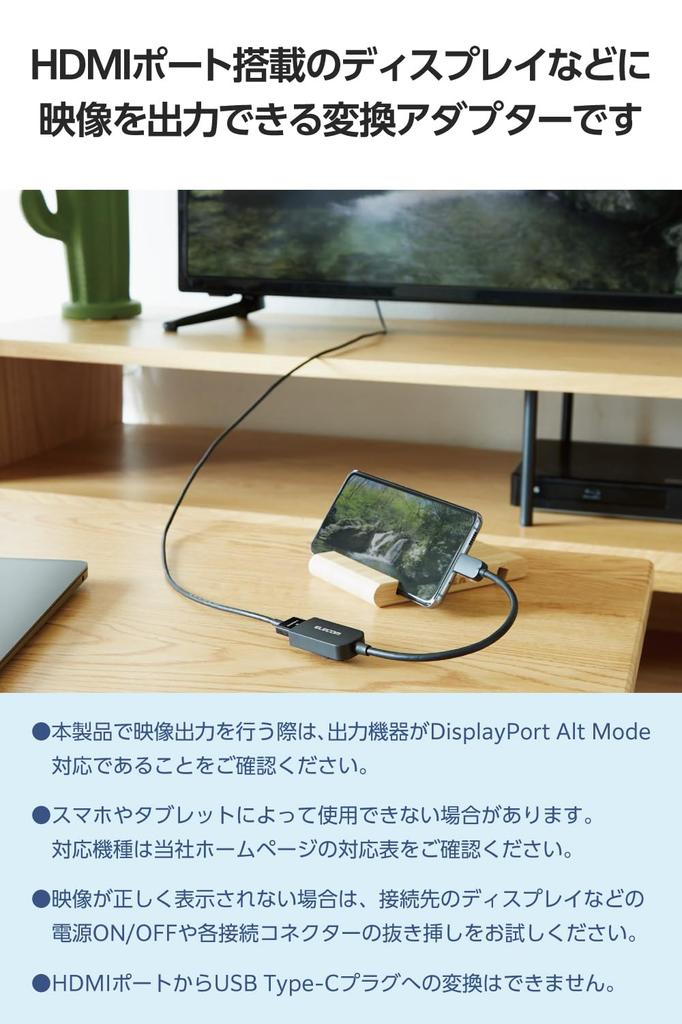Elecom Адаптер USB-C, совместимый с HDMI, Google, 0,15 м, зеркалирование нескольких дисплеев 4K/60 Гц, iPhone, Pixel, Xperia, Galaxy, iPad, Surface, и другие,