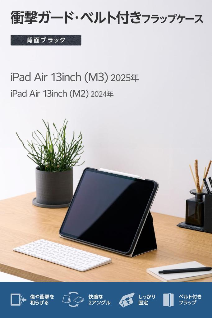 Elecom Чехол для iPad Air Мягкий Двойная подставка Стилус 13-дюймовый (М3/М2) 2025/2024, Кожа, Легкий, Режимы, Держатель, Черный, TB-A25XPLF2BK