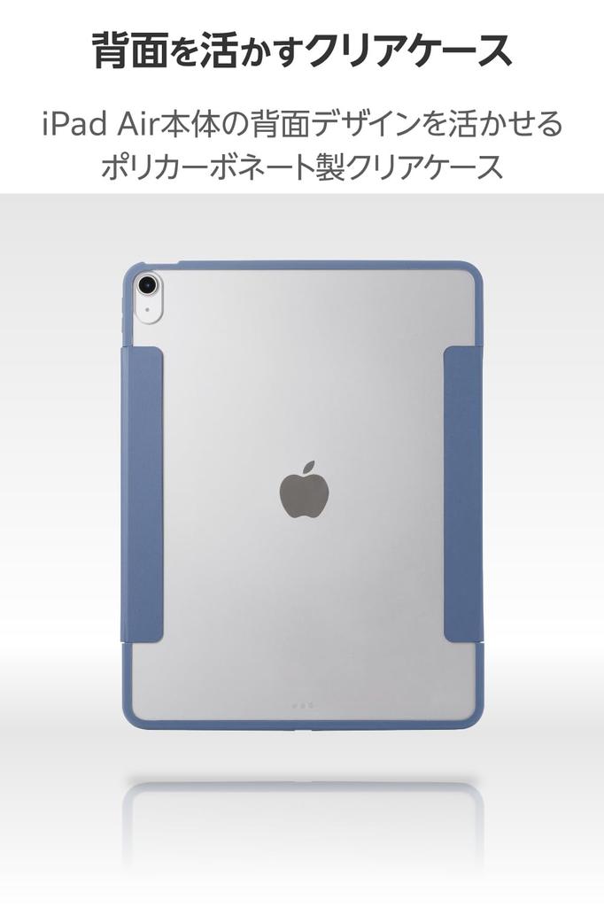 Elecom IPad Air Флип-чехол TPU Противоударный Прозрачный 13-дюймовый (М3/М2) 2025/2024 Чехол, Чехол, Материал, Устойчивый, Тонкий, Легкий, Задняя панель, Сине-серая рамка,