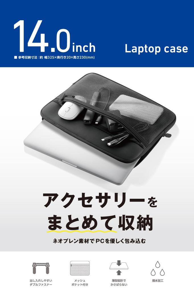 Elecom Неопреновый чехол для ноутбука с карманом на молнии для 14-дюймовых ПК, черный, BM-IBPTNP14BK