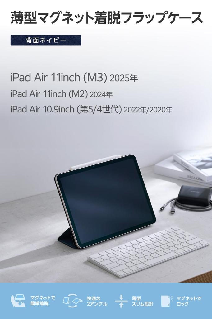ELECOM iPad Air Magnetic Soft Auto 11-inch (M3/M2) 10.9 (5th/4th Generation) Case, Cover, Leather, Sleep/Wake, Navy, TB-A25MWVPF2NV
