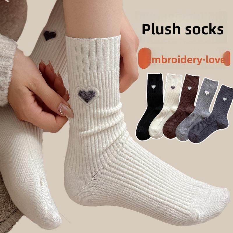 Бесшовные кашемировые носки, Утепленные теплые носки средней длины, Утепленные теплые махровые носки с вышивкой сердечек для осени и зимы — купить товар онлайн с бесплатной доставкой по всему миру!
