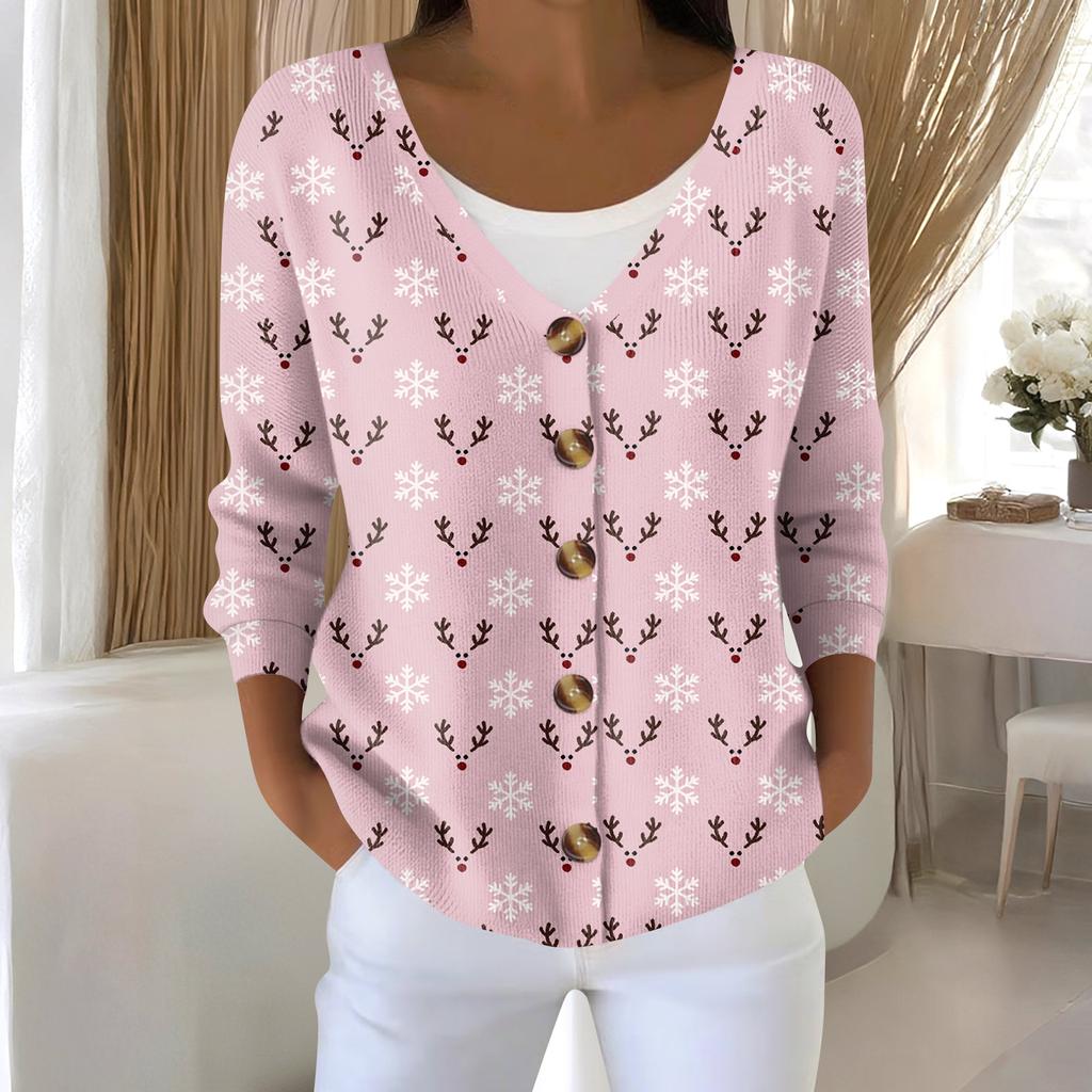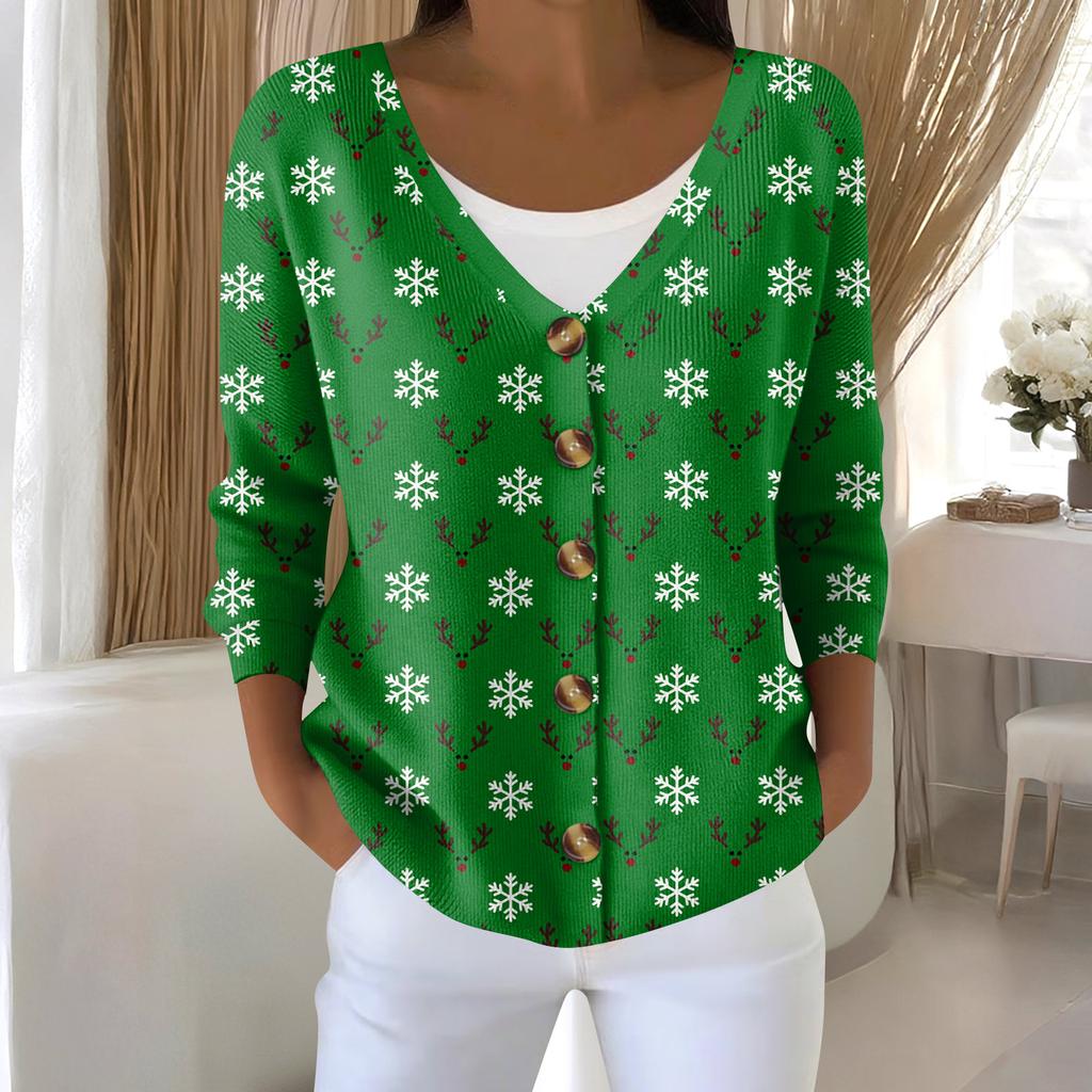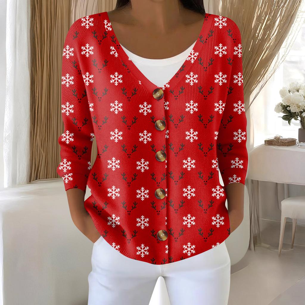 Женская мода с длинным рукавом, рождественский принт «Снеговик-снежинка», куртка, кардиган