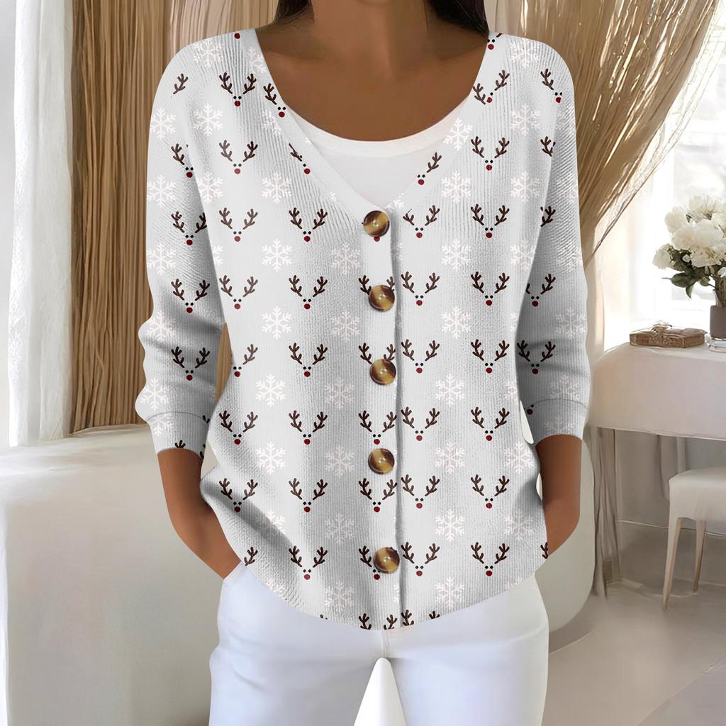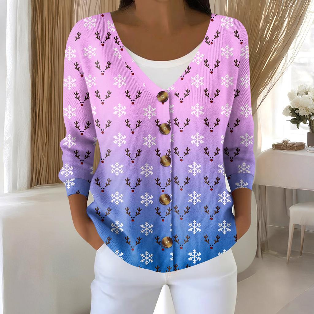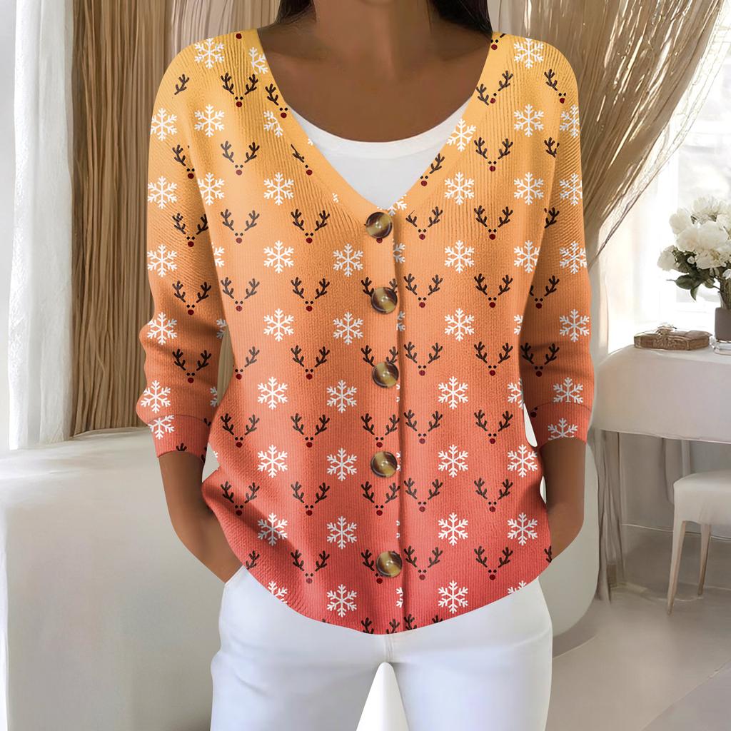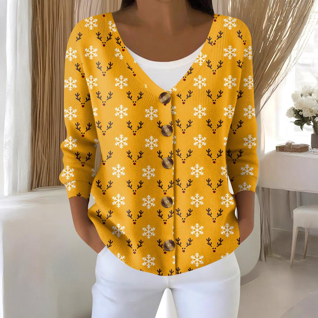 Женская мода с длинным рукавом, рождественский принт «Снеговик-снежинка», куртка, кардиган