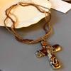 Средневековая бирюзовая сверкающая бриллиантовая инкрустированная цепочка для свитера, двусторонняя крестообразная хрустальная подвеска, женская