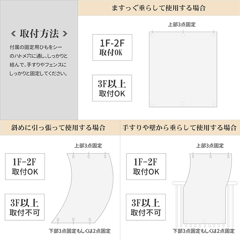 [Простая установка] Солнцезащитный козырек имеет нержавеющие люверсы. Просто отрежьте прилагаемую веревку до желаемой длины и следуйте японским инструкциям, чтобы легко, безопасно и гибко установить экран-солнцезащиту.. Солнцезащитный козырек с защитой от УФ-лучей легко моется средством от плесени и водой для предотвращения появления плесени и выцветания, обеспечивая длительное использование.. Солнцезащитный козырек также можно сложить для компактного хранения.