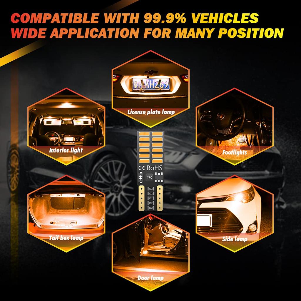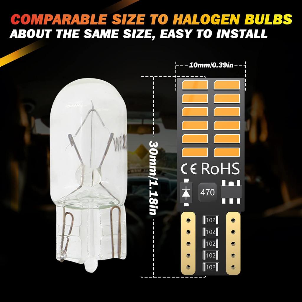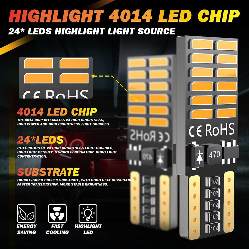 Standard T10 W5W Amber Canbus Error Free Lamp with 4014 24-SMD High Output LED Lens Brighter than Regular Incandescent Bulbs