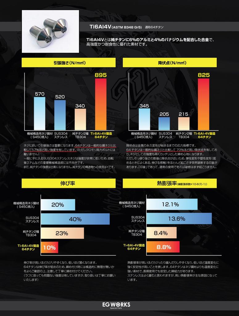 EGWORKS 64 High Strength Titanium Bolts ULTRA-Ti™ M5/16mm for Stem with Washers, Premium Black, Set of 6