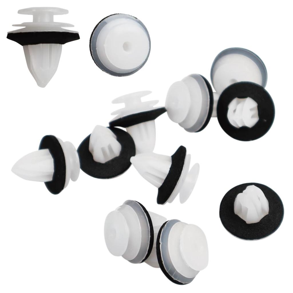 Это набор из 10 панельных клипс, которые используются для передних бамперов, задних дверей, подкрылков, подкрылков и т.д.. Поскольку это расходный продукт, удобно иметь его на случай потери или порчи во время работы.. Количество: 10 кусочков; Совместимый диаметр отверстия: приблизительно. 0,3 дюйма (8,5 мм); Материал: пластик; Совместимый оригинальный номер детали: 90467-09206/SU003-02981; MU000571/MQ500344; 9S9A-K1-0318; 24273-4A0 0E/02 809-6A0A4 09409-10318 909130228