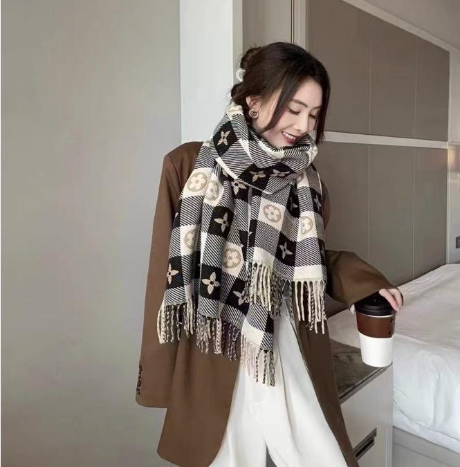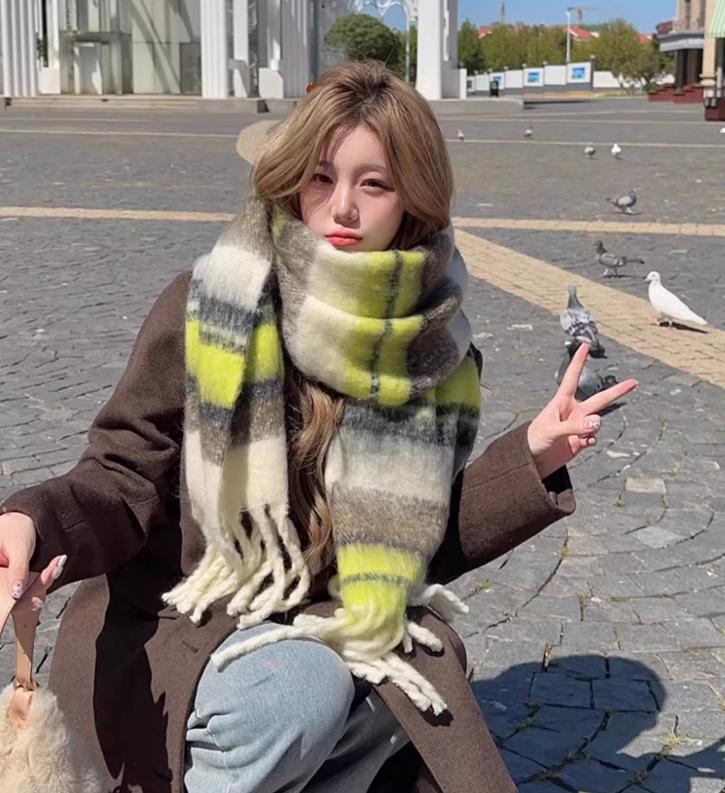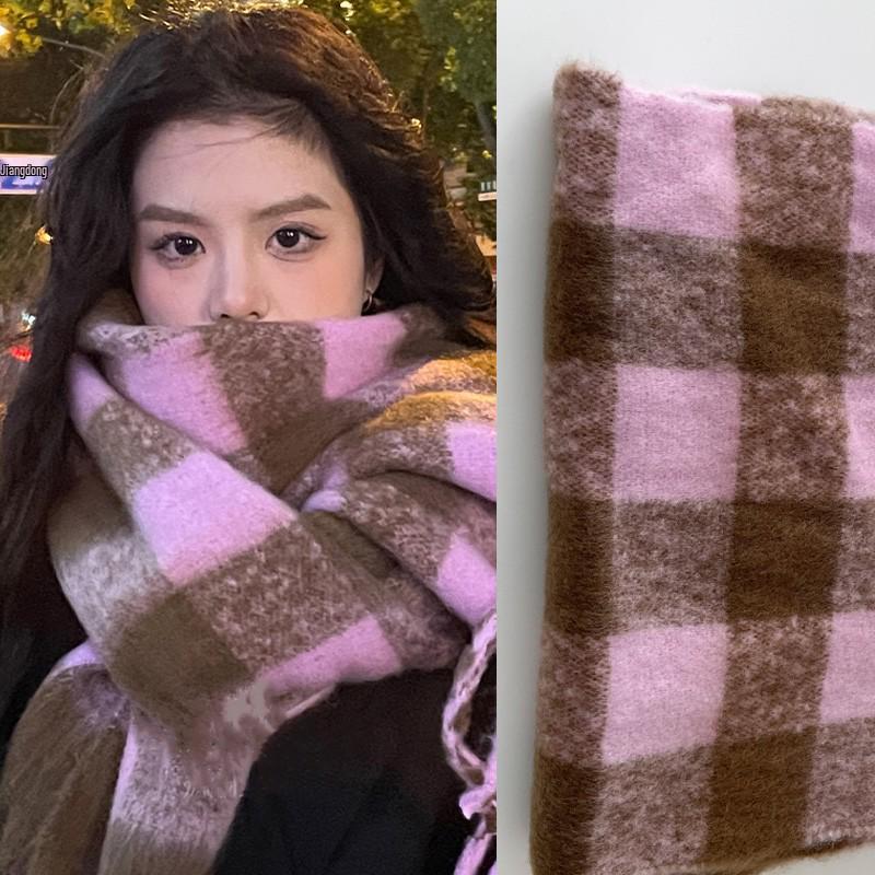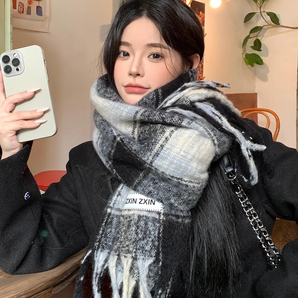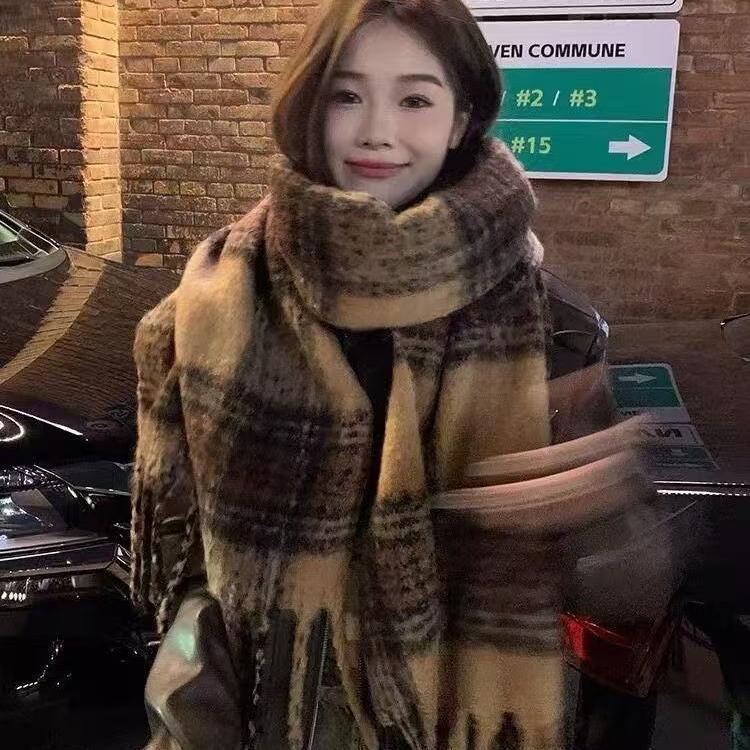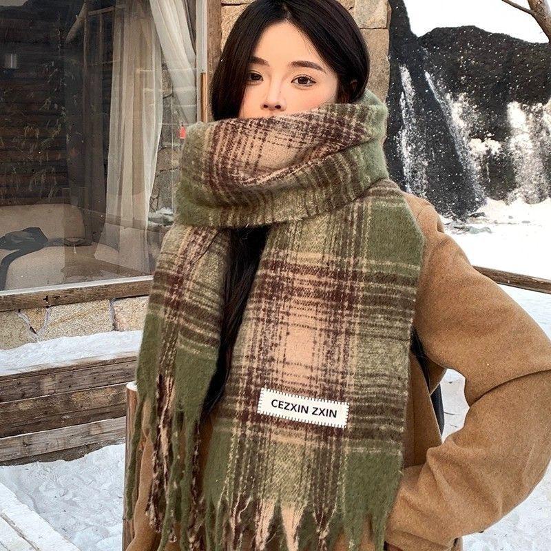 Женский шарф в клетку в корейском стиле - Модный, Универсальный, Утепленный вязаный снуд
