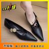 Вечерний ветер маленькие кожаные туфли с острым носком темперамент металлическая пряжка слово с высоким каблуком мелкий вырез 2025 весна и осень новые универсальные для работы