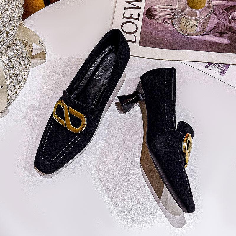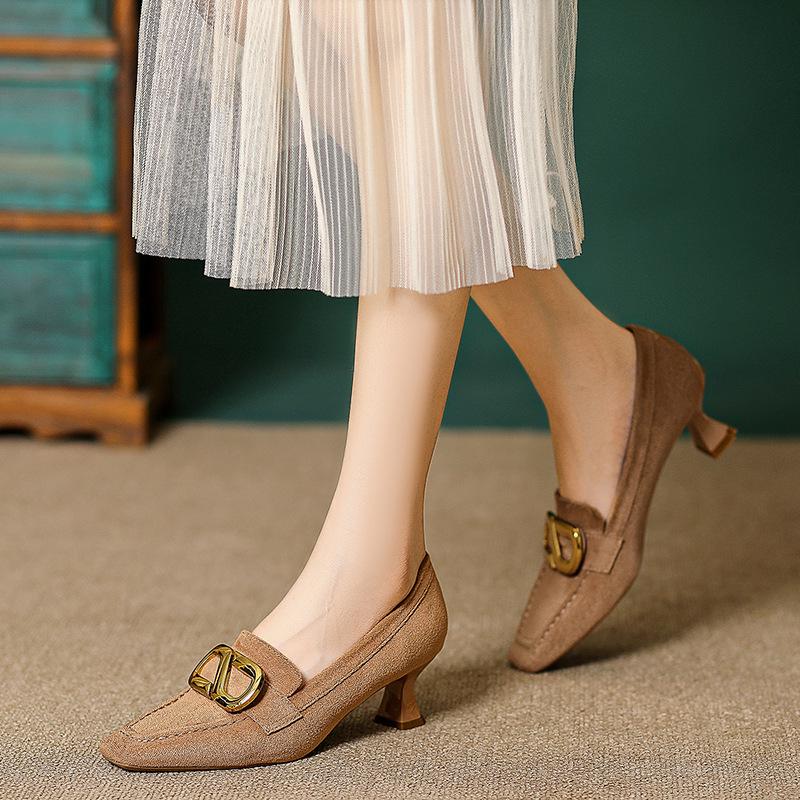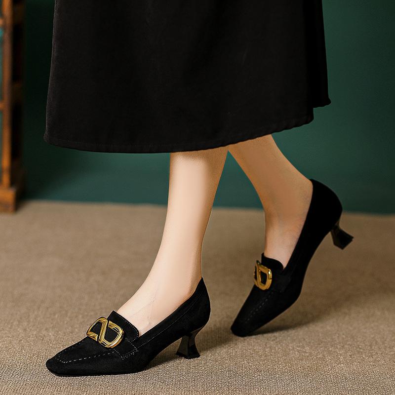 Square head single shoes women's 2025 new college style women's shoes spring and autumn professional work shoes women's black high heels stiletto