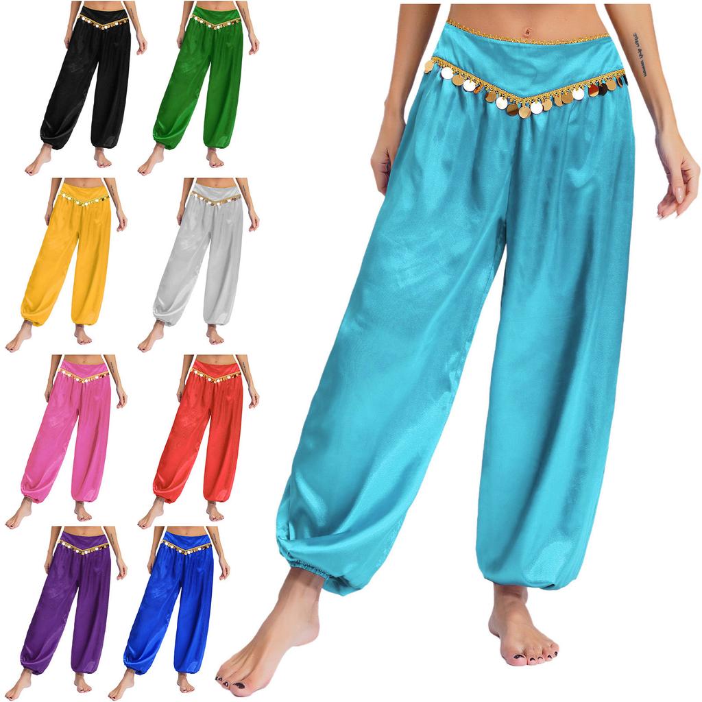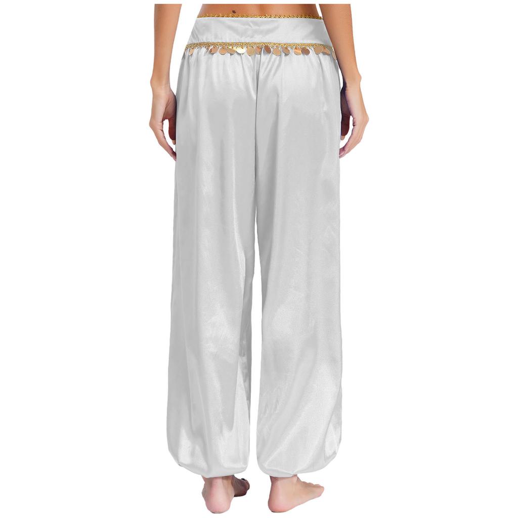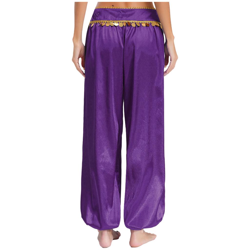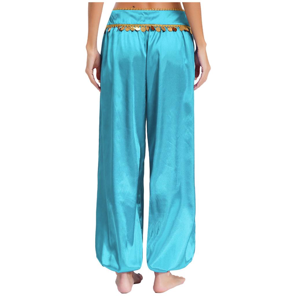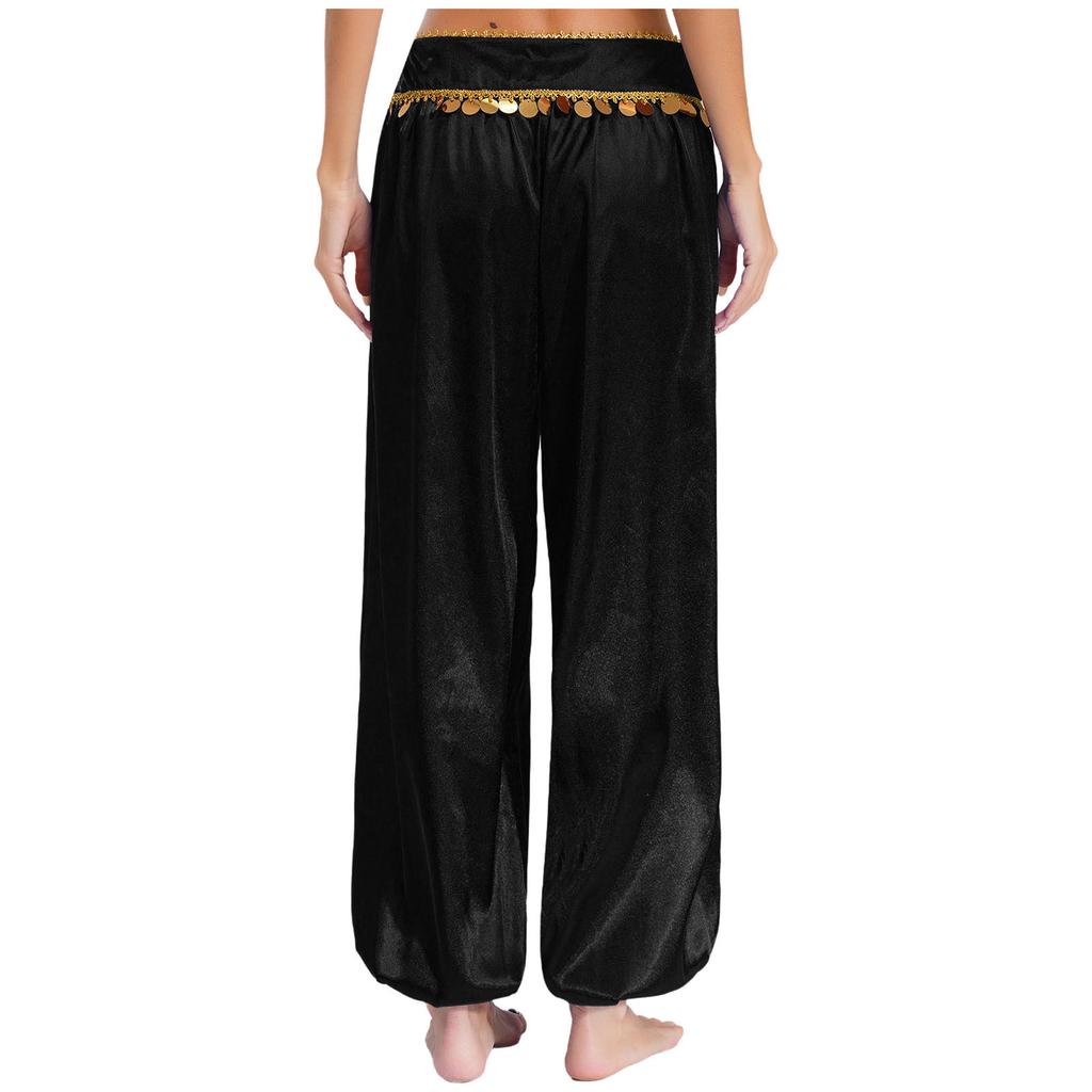 Женские брюки для танца живота с низкой посадкой, пайетками, свободные брюки гаремы, мешковатый дизайн, костюм для Хэллоуина, арабский, для выступлений