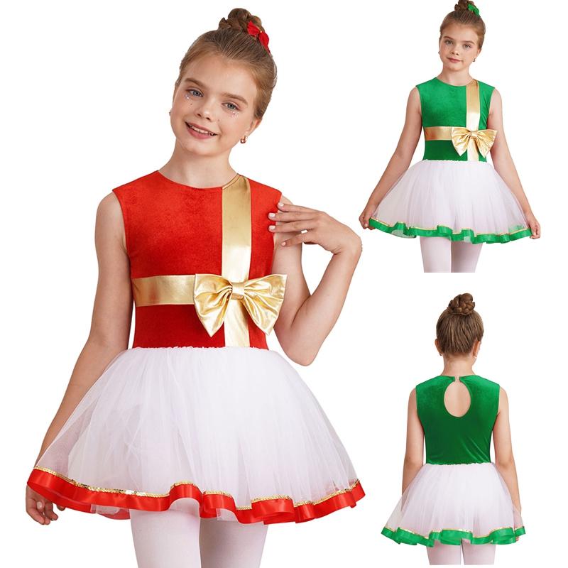 Girls Christmas Dance Dress Sleeveless Keyhole Back Patchwork Bow Sequin Design Leotard Party Costume Santa Theme — купить товар онлайн с бесплатной доставкой по всему миру!