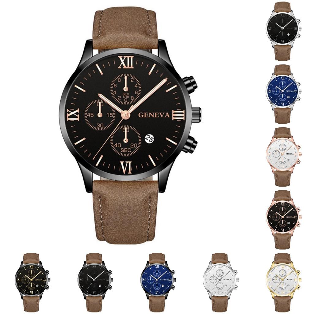Мужские кожаные деловые модные часы с ремешком для подарков