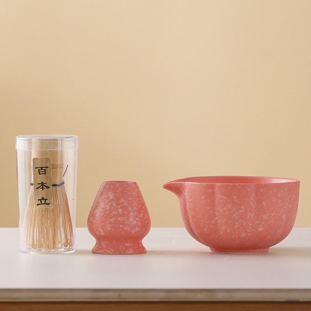 3Pcs/Set Match Bowl Matcha Whisk Set Tea-Making Tools Ceramic Chasen Stand for Tea Lovers