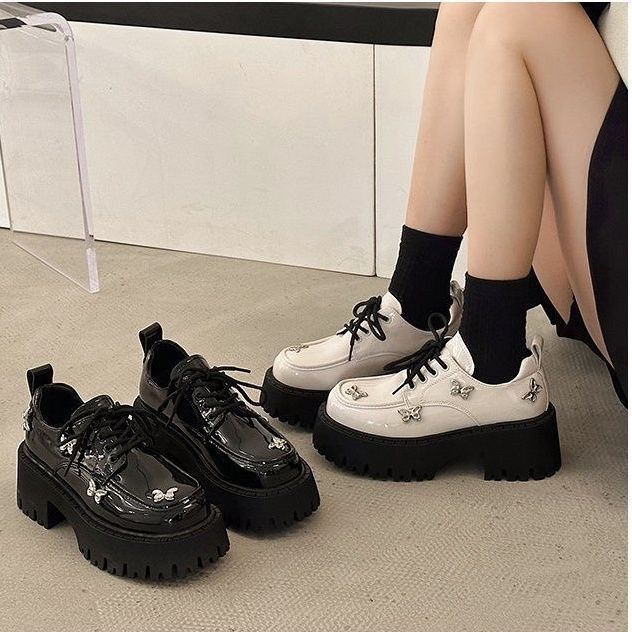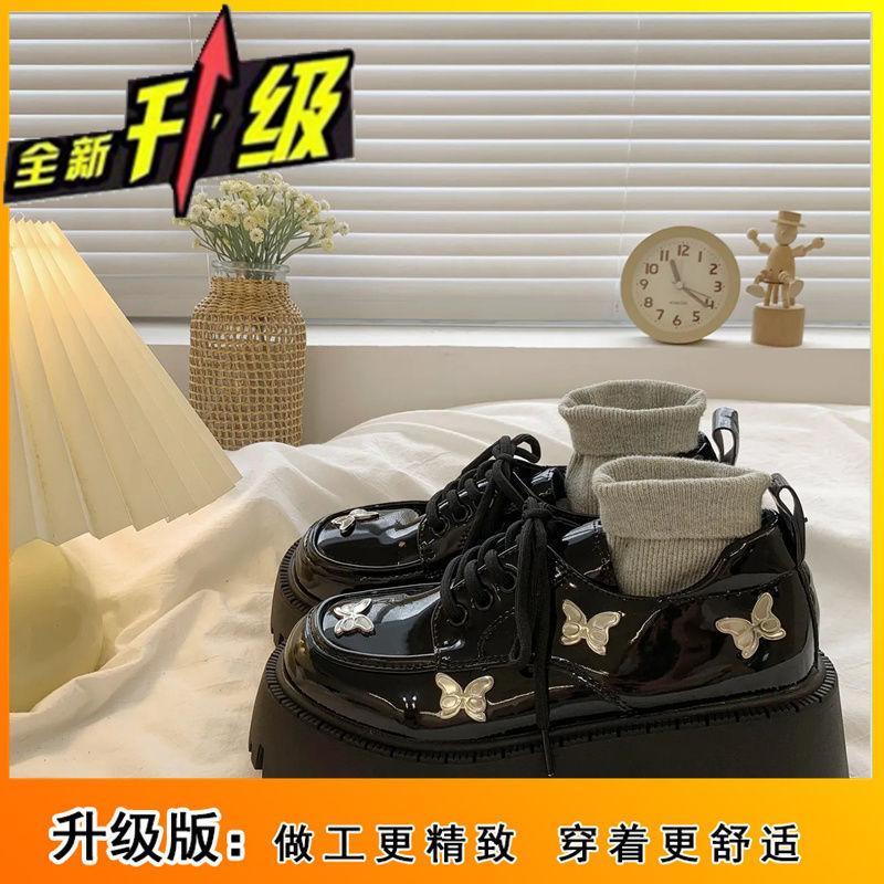 Милые туфли-лодочки на черной платформе из маленькой кожи, весна и осень 2025, новая британская ретро-модель с небольшой высотой, одинарные туфли