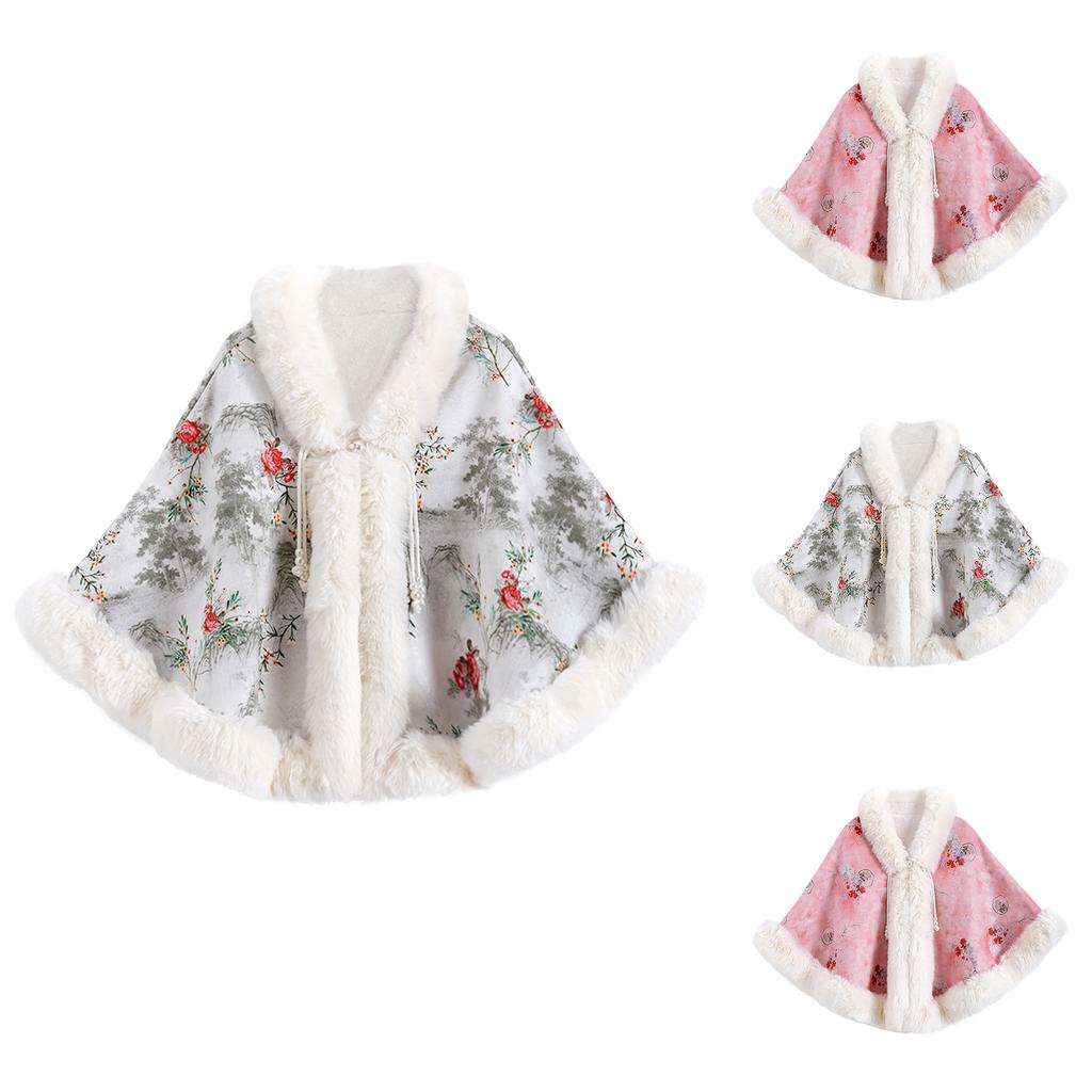Женский модный свадебный чонсам с принтом тушью, плащ-накидка Байта с бархатной застежкой-пуговицей и шалью для женщин