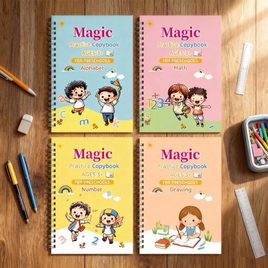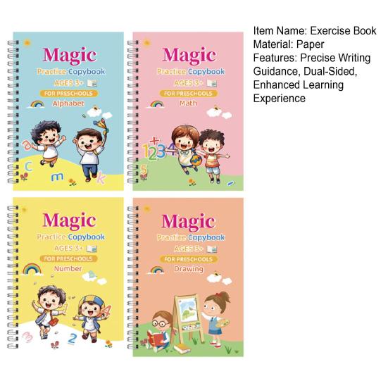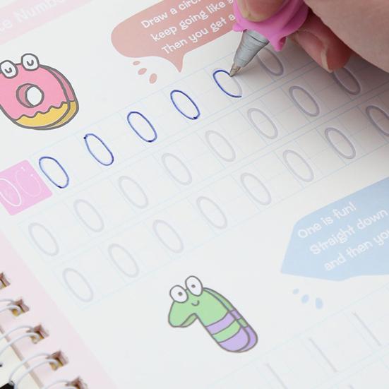Двусторонний подход к обучению: Каждая книга обеспечивает двойной опыт обучения: страницы с нечетными номерами содержат прописи с канавками для начинающих и быстро выцветающие чернила.. В отличие от этого, на четных страницах предлагаются продвинутые упражнения с полными словами, паттернами и более медленным выцветанием чернил для продолжительных тренировок до одного часа.
