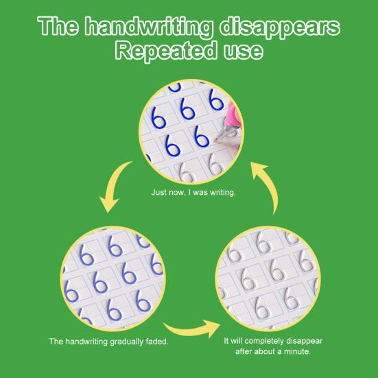 Предлагая двусторонний опыт обучения, страницы с нечетными номерами содержат прописи с углублениями для начинающих с более быстрым выцветанием чернил, а страницы с четными номерами включают узоры и полные слова без углублений для более продвинутых упражнений с более медленным выцветанием, сохраняющимся до 1 часа.