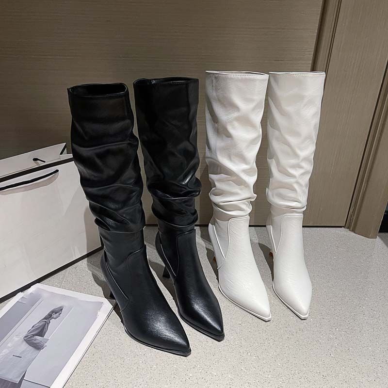 Женские длинные сапоги на тонком остром каблуке, новинка осени и зимы 2025 года, сапоги-чулки до колена на высоком каблуке, детские