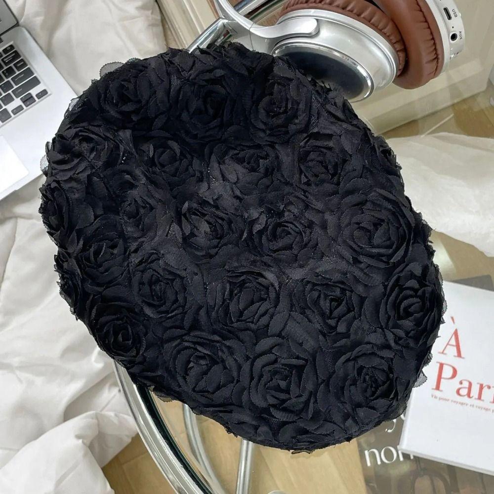 Ретро Тонкая Шапка Бини Корейская Шапка Художника Новая Берет с Розой