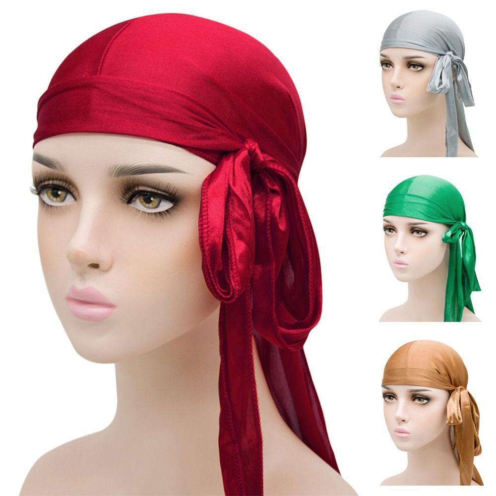 Pre-Tied Silk Durag Elastic Turban Hijab Fashion Bandana