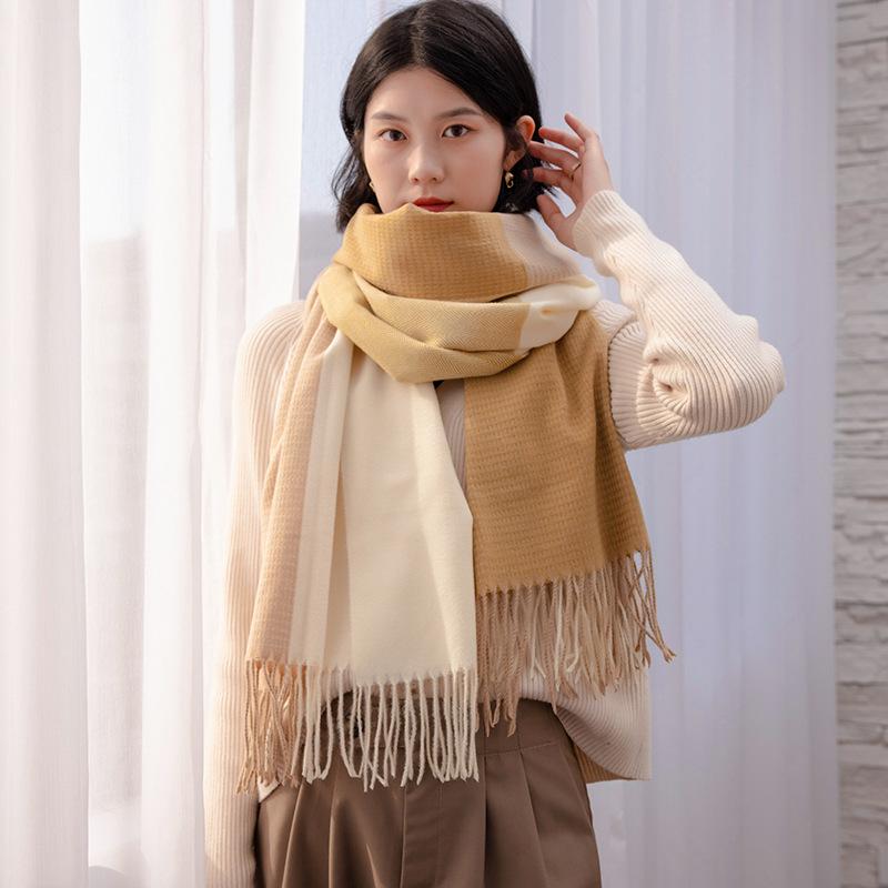 Gradient Color Scarf Women's New Autumn and Winter Imitation Cashmere Japanese and Korean Sweet Scarf Warm Mid Length Shawl
