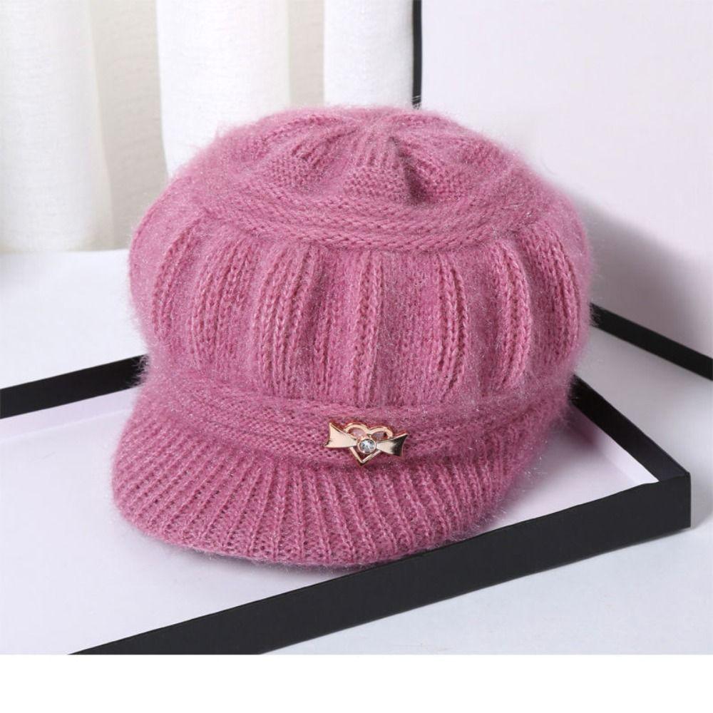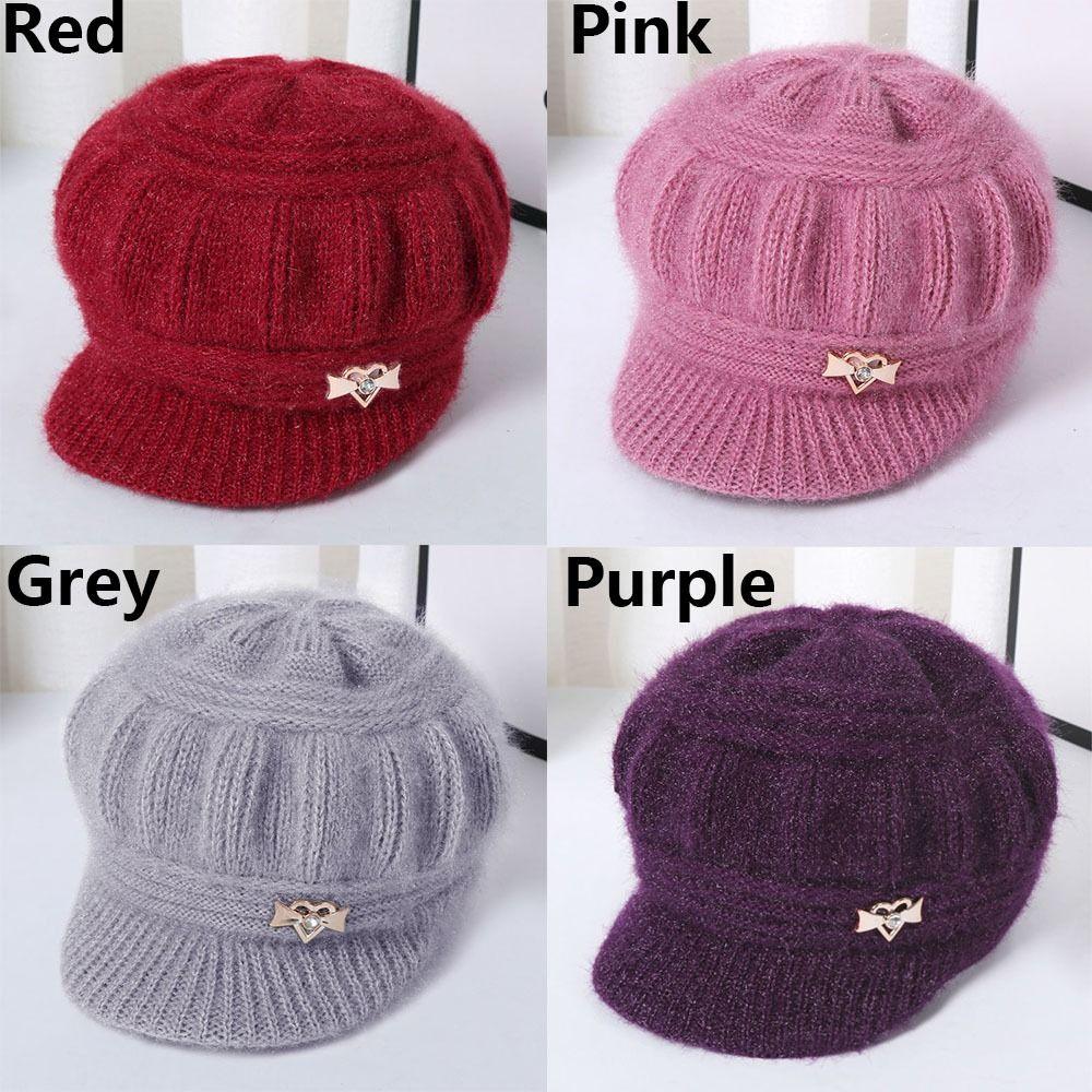 Защита ушей Теплая тыквенная беретка Двухслойные защитные шапки Женская вязаная шапка Кепка с козырьком
