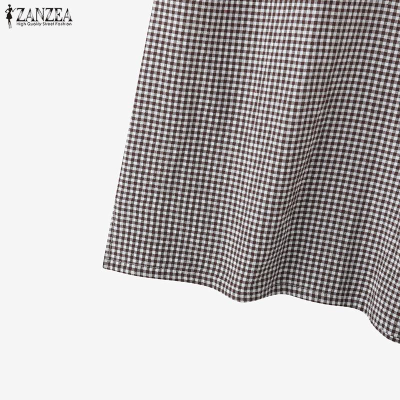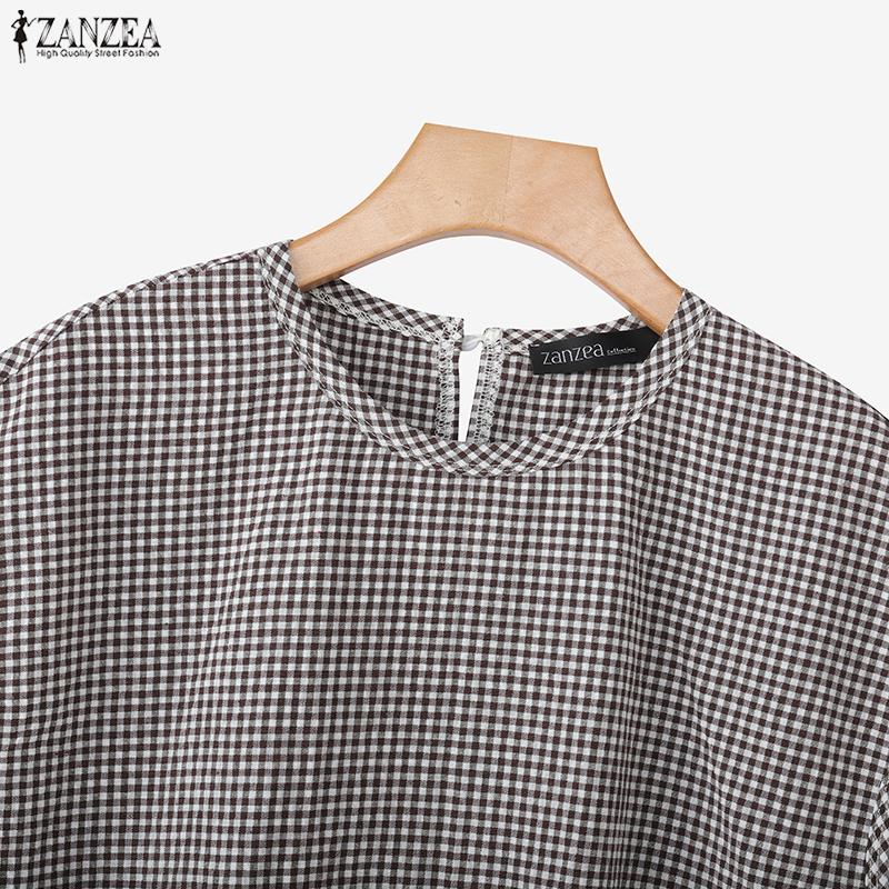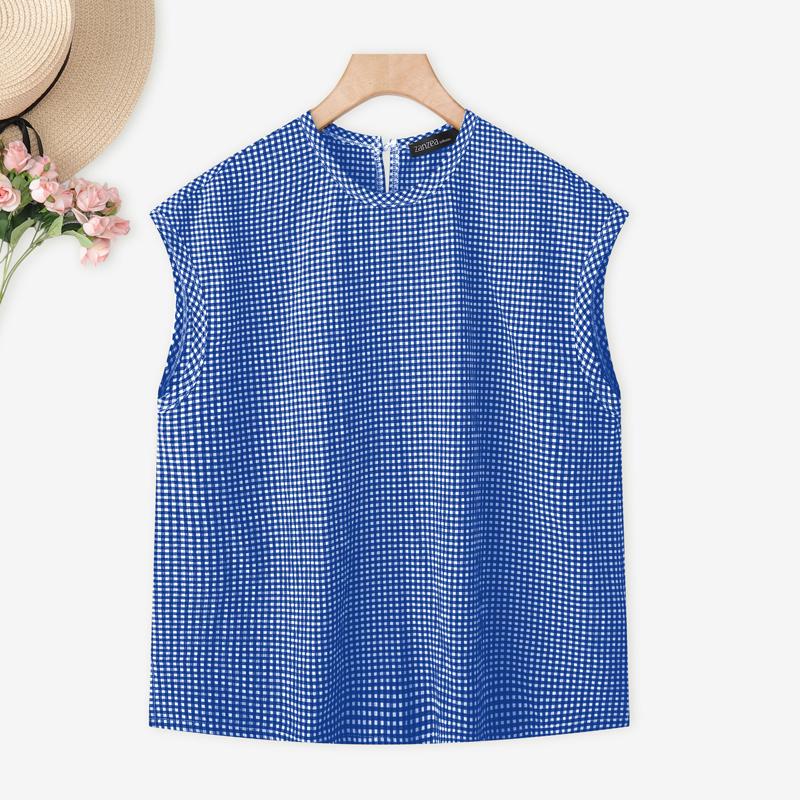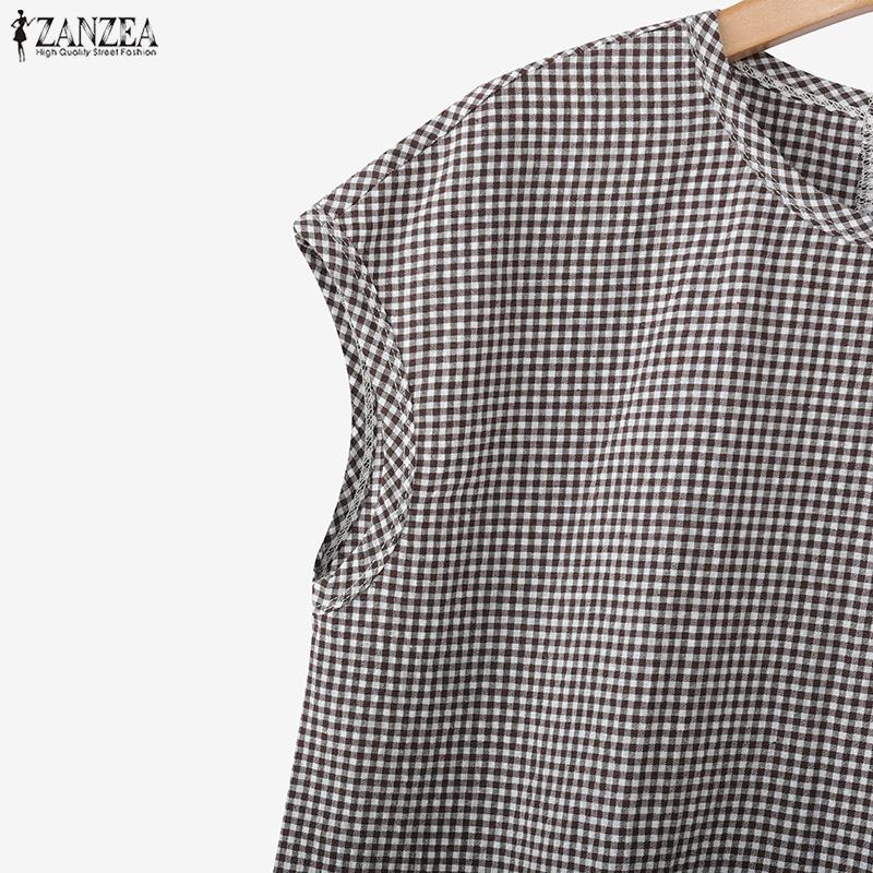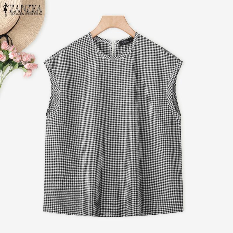 ZANZEA Женская повседневная блузка без рукавов с круглым вырезом и клетчатым принтом