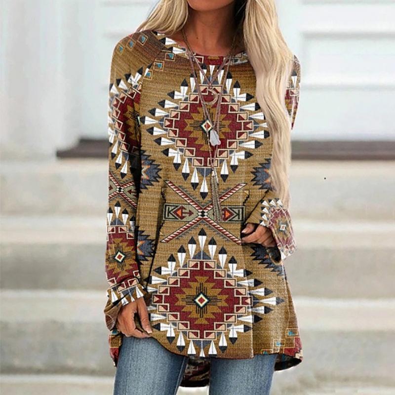 Ацтекский этнический стиль, футболки с волком, женская футболка с геометрическим 3D принтом и длинным рукавом, уличная одежда больших размеров, женская туника, футболки, топы, одежда