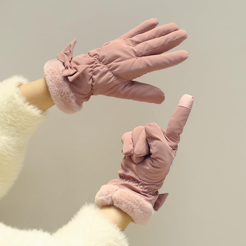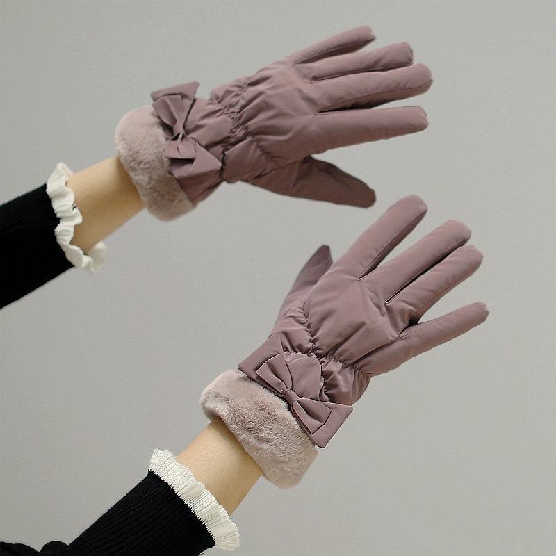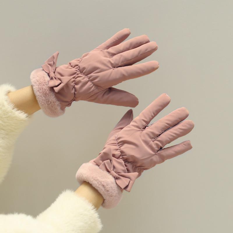 Студенческие женские зимние велосипедные перчатки-бантики утолщенные непродуваемые милые зимние перчатки бархатные теплые