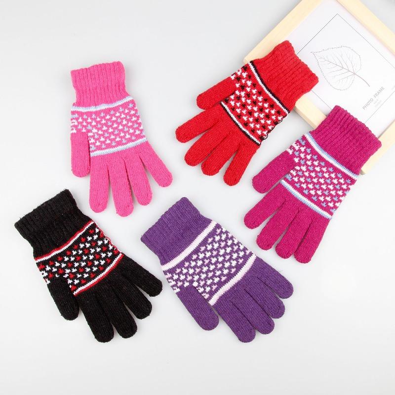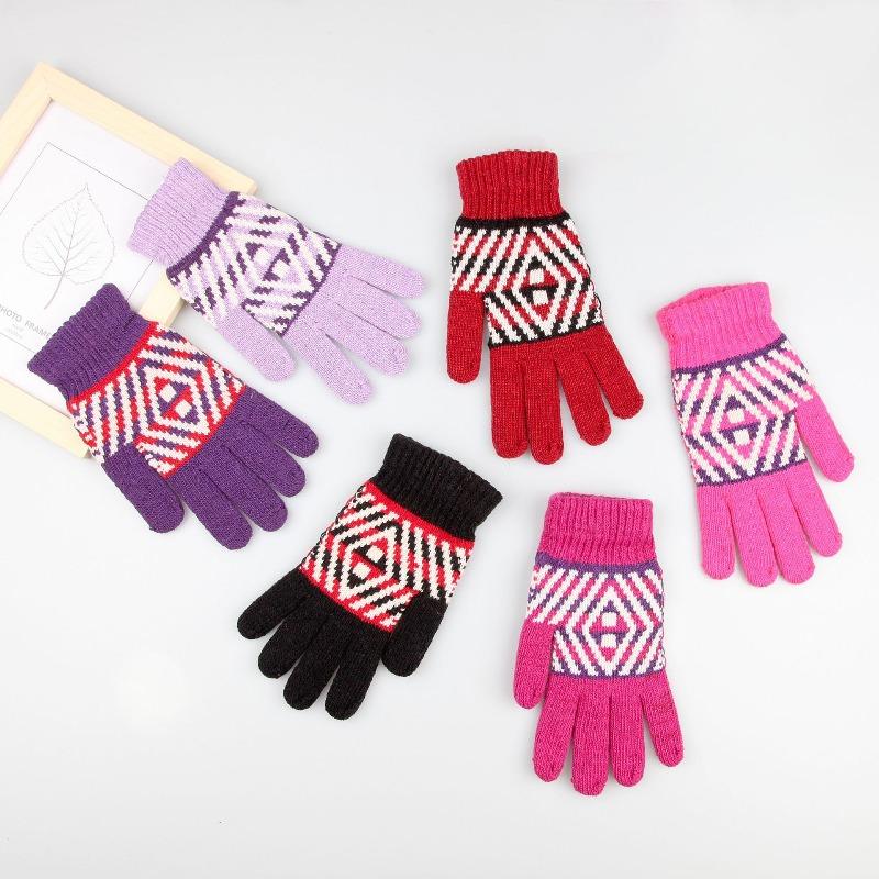 Зимние женские непродуваемые и теплые перчатки для велоспорта, плюшевые шерстяные вязаные полнопалые жаккардовые, поставка с лотка