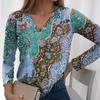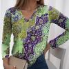 Весенне-осенний топ с V-образным вырезом и 3D-принтом пейсли, модная повседневная женская футболка с длинным рукавом