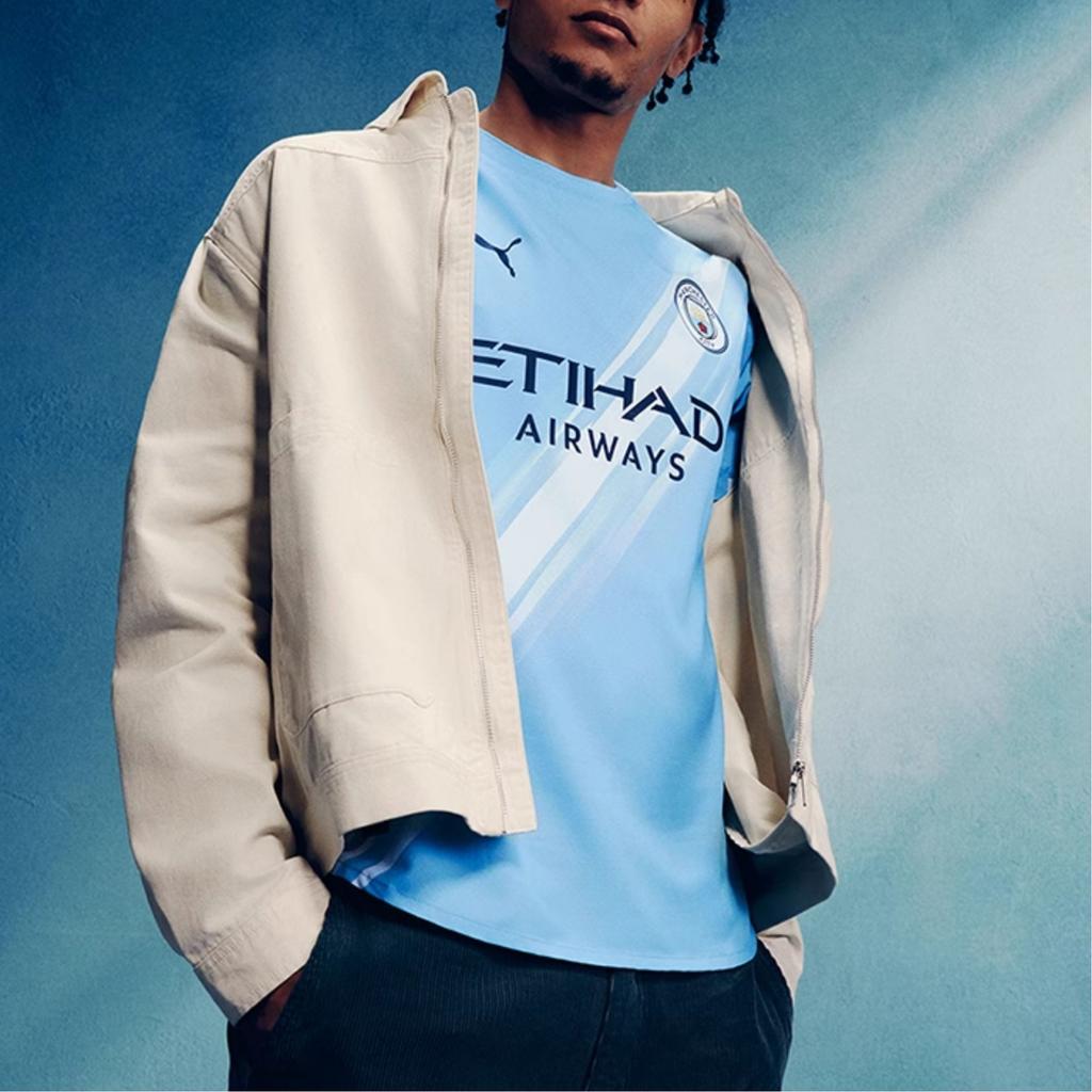 Puma Манчестер Сити Сезон 25-26 Домашняя Игровая Версия Удобный Пуловер с Круглым Вырезом Футболка с Коротким Рукавом Мужские Топы Синий 78079201
