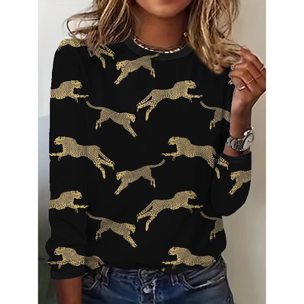 Весенне-осенний топ с круглым вырезом, леопардовым принтом и 3D-печатью, модная повседневная женская футболка с длинным рукавом — купить товар онлайн с бесплатной доставкой по всему миру!