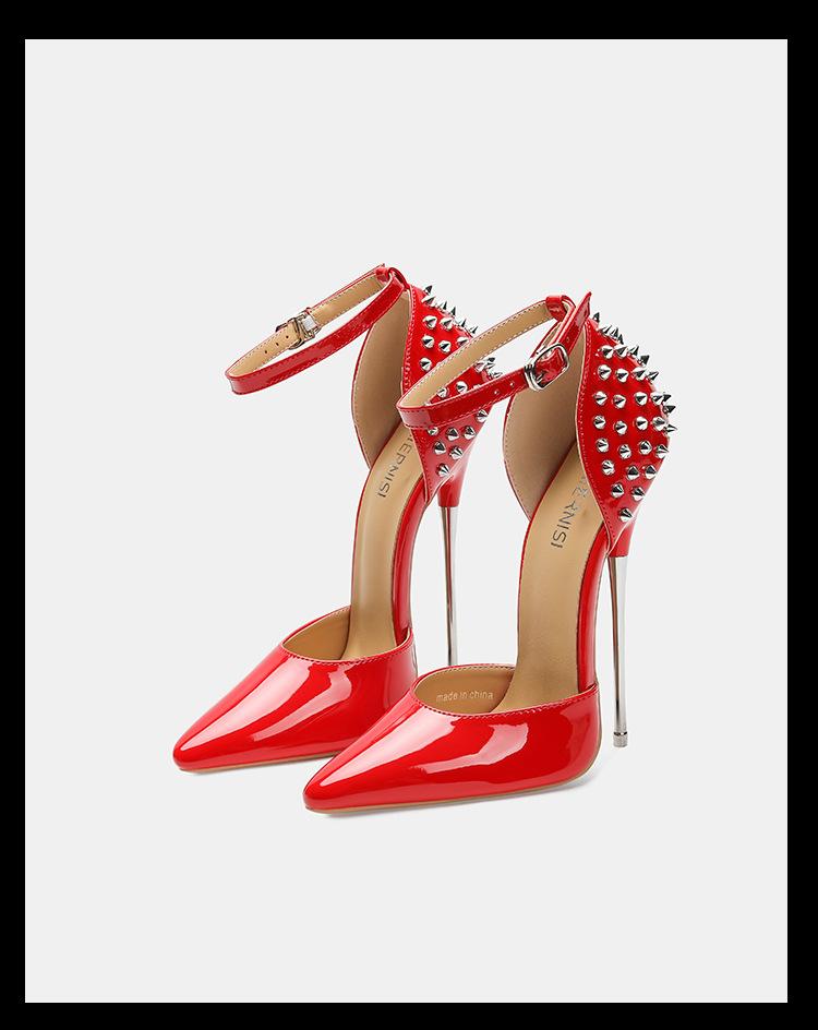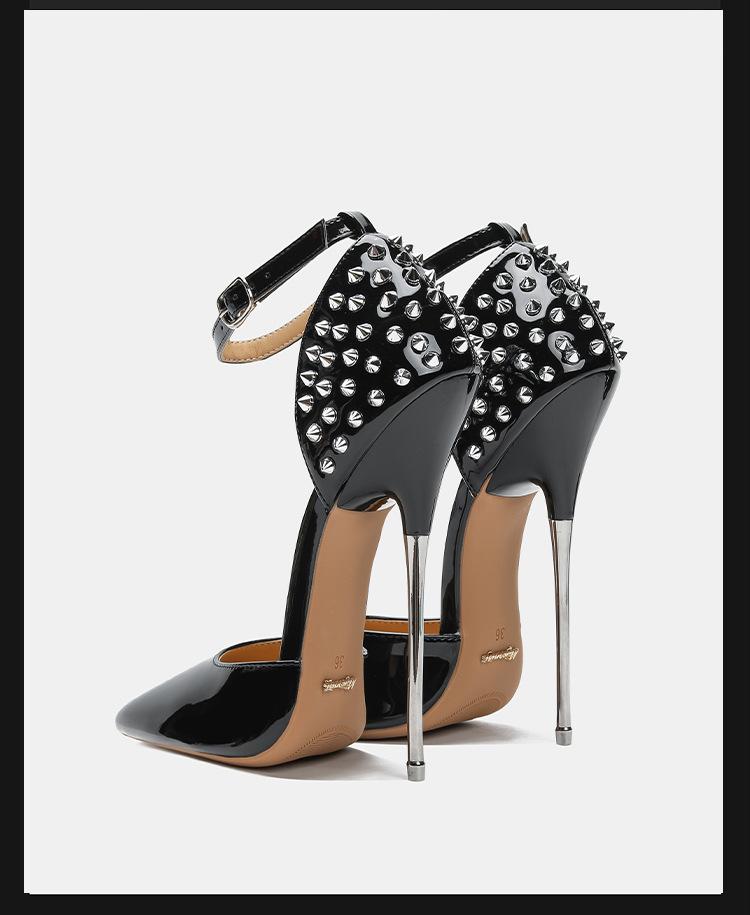 Женские 16-сантиметровые туфли-босоножки на высоком каблуке из лакированной кожи с острым носком и заклепками, с ремешком на щиколотке, размеры 35-46