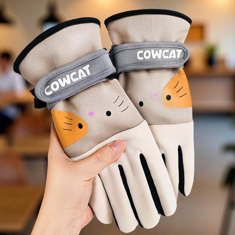 Осень и зима теплые водонепроницаемые и нескользящие перчатки милые кошачьи бархатные утолщенные студенческие женские для бега на открытом воздухе верховой езды