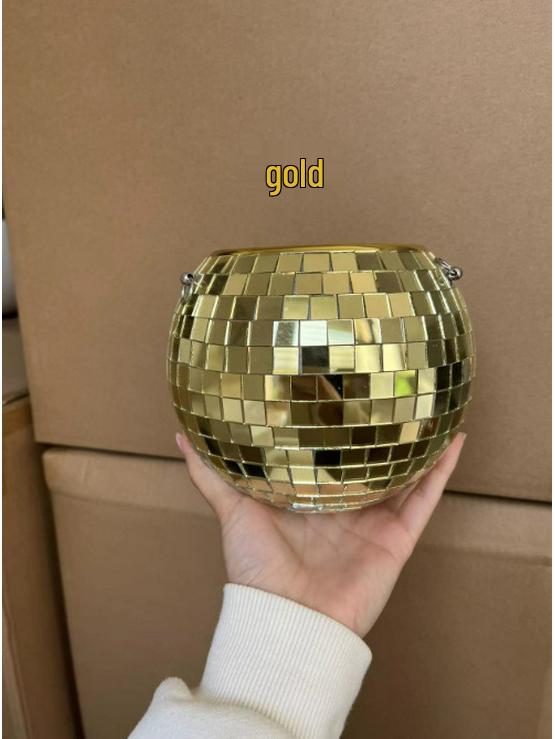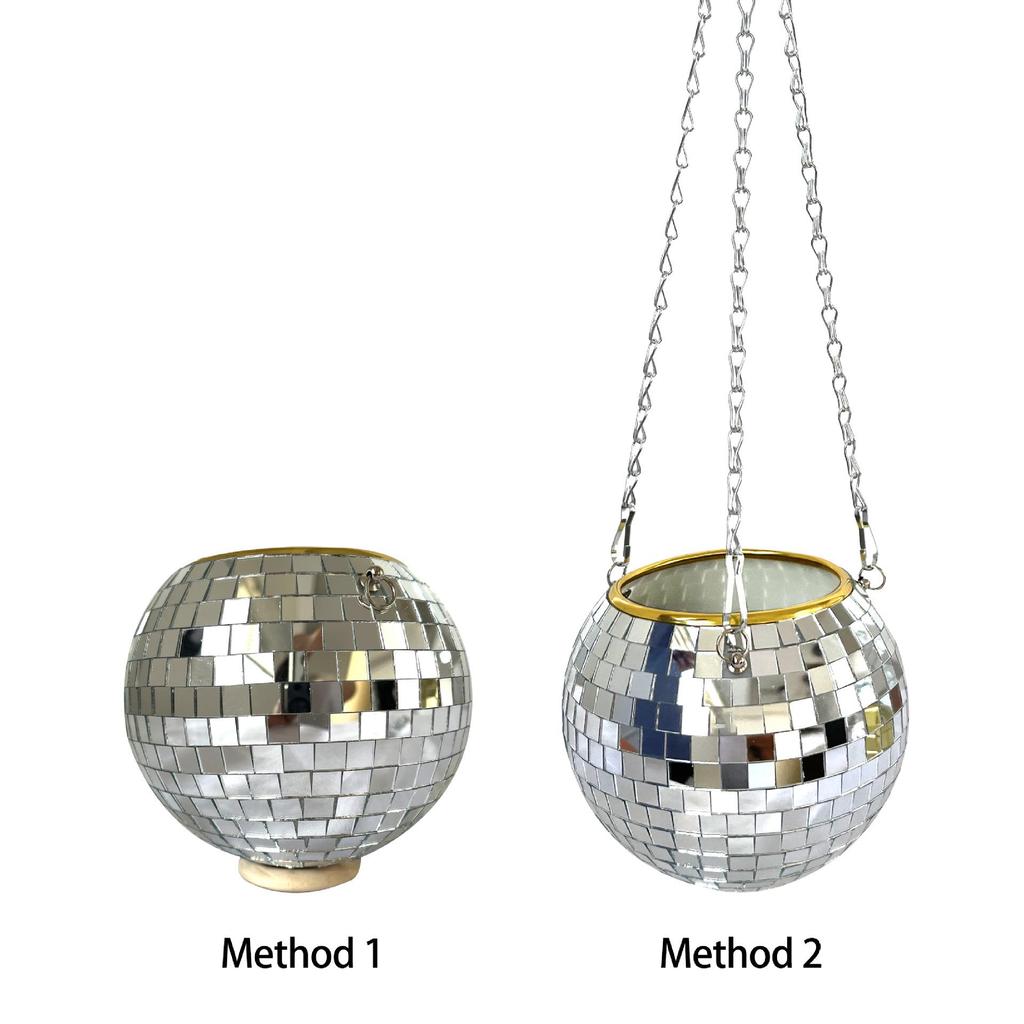 Трансграничный горшок-диско-шар: Зеркальный диско-шар в форме подвесного цветочного горшка для рождественского садоводства.